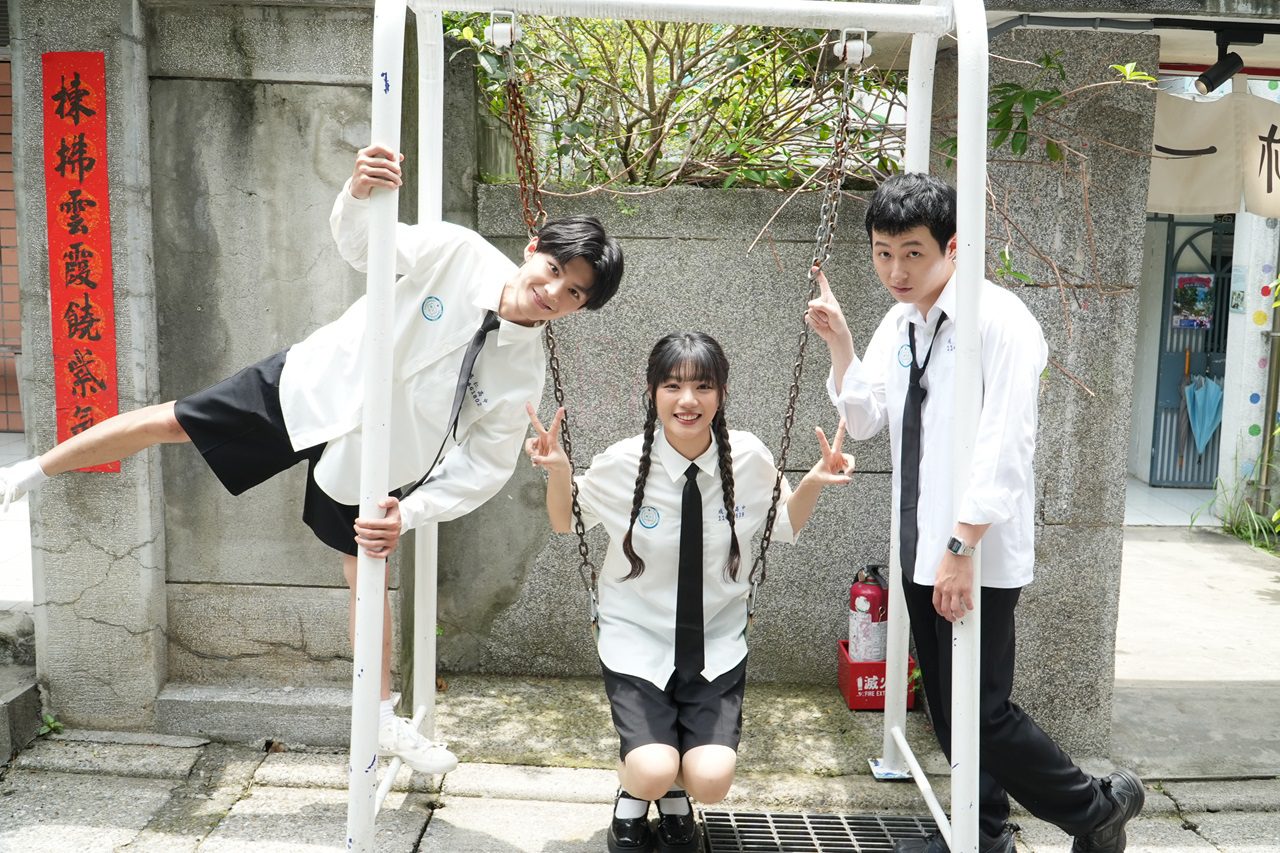 陳俞諺(左起)、木木、張凱喆於《成仁高中偵探社》合作飾演「學生墜樓案」事件