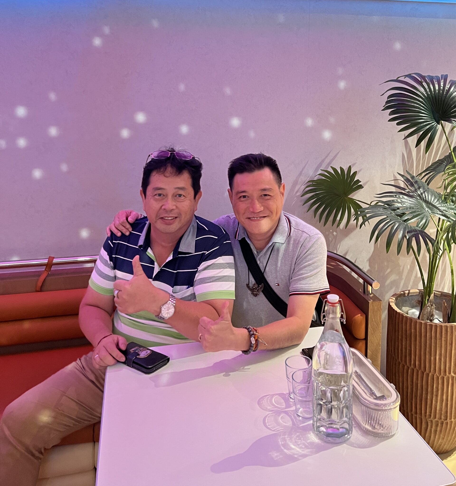 兩個中年男子,坐在高雄左營一間叫「小孩吃素」的蔬食餐廳。