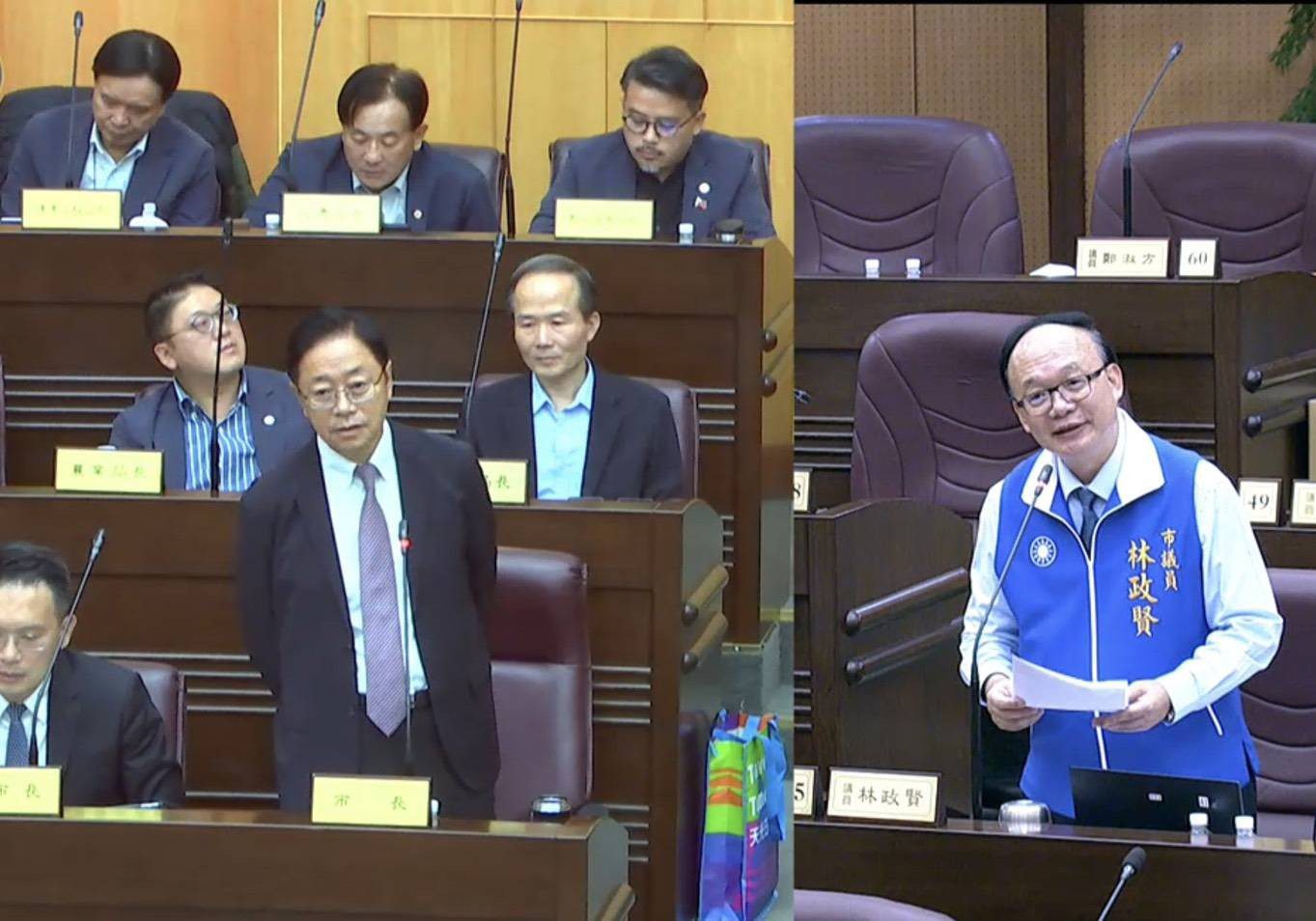 議員林政賢質詢時,除了提出南門市場火災後重建議題外,也就土地資源活化、市政中心選址、商圈振興、減塑政策及新住民教育等議題提出質詢。林政賢指出,外界謠傳民進黨將派林佳龍、何志偉或王義川參戰2026選戰,要求張善政公開表示有信心爭取連任,並盡速正式宣布,讓市民安心。張善政答詢引述雷根總統的話:「我不會以我的對手年紀輕而攻擊他」,並強調有信心連任。