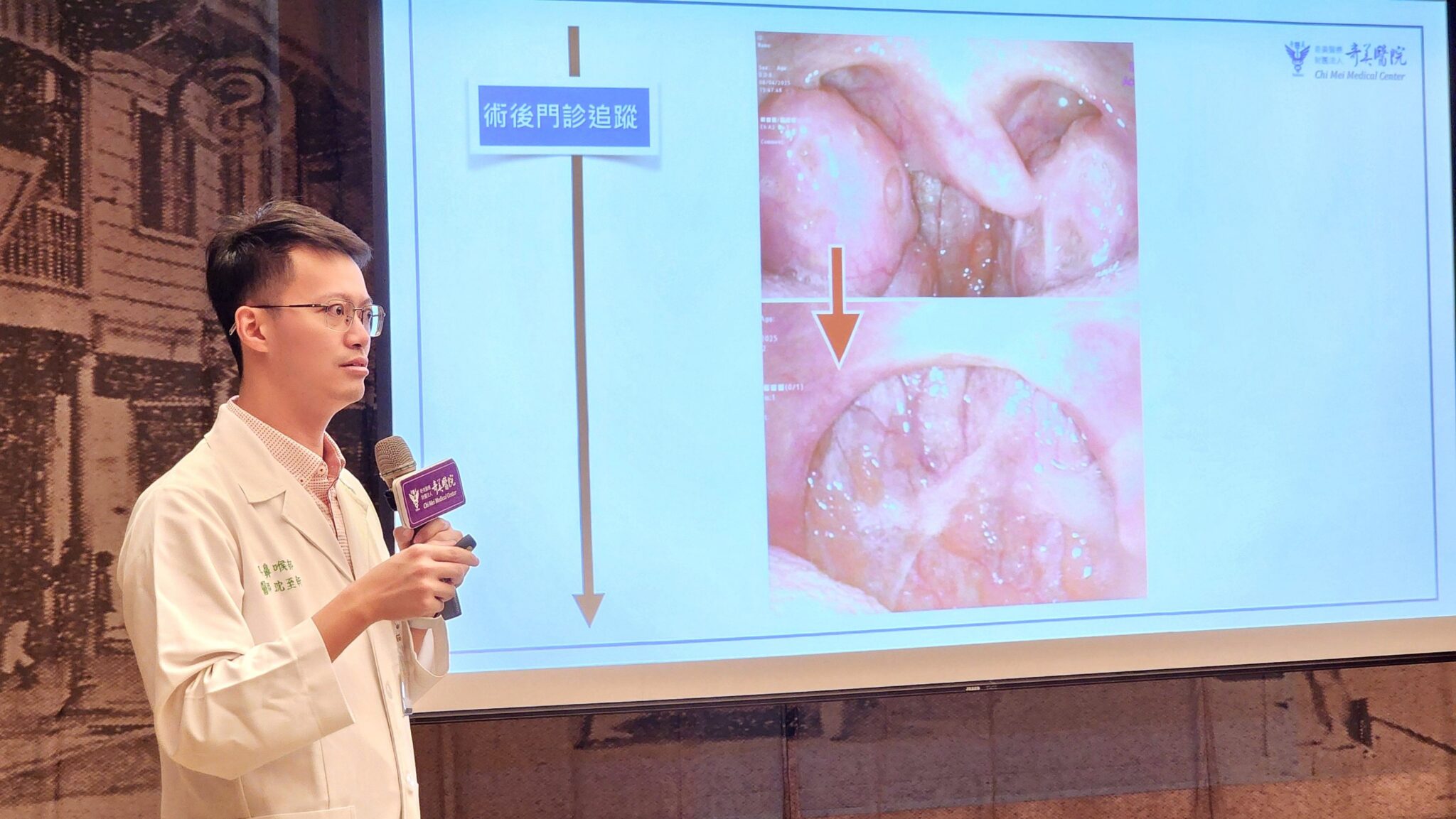 27歲潘先生因嚴重打鼾合併黃鼻涕,內視鏡檢查發現有慢性鼻竇炎、鼻中膈彎曲併鼻甲肥大及雙側扁桃腺與懸壅垂肥大等,嘗試藥物與正壓呼吸器(CPAP) 改善,但療效有限。經接受微創鼻竇及鼻中膈鼻道成型手術改善鼻道通氣,再進行雙極射頻扁桃腺切除裝置輔助懸壅垂顎咽成型術,術後呼吸道阻塞緩解,不再需要依靠CPAP的輔助,睡眠品質及白天精神提升。