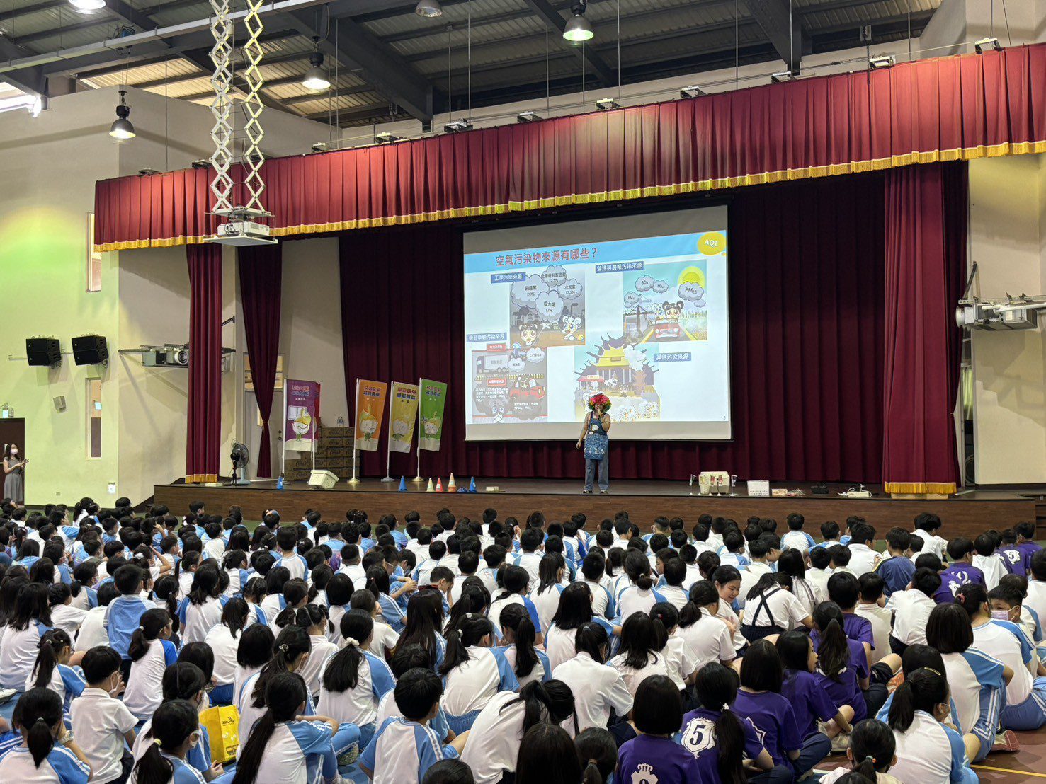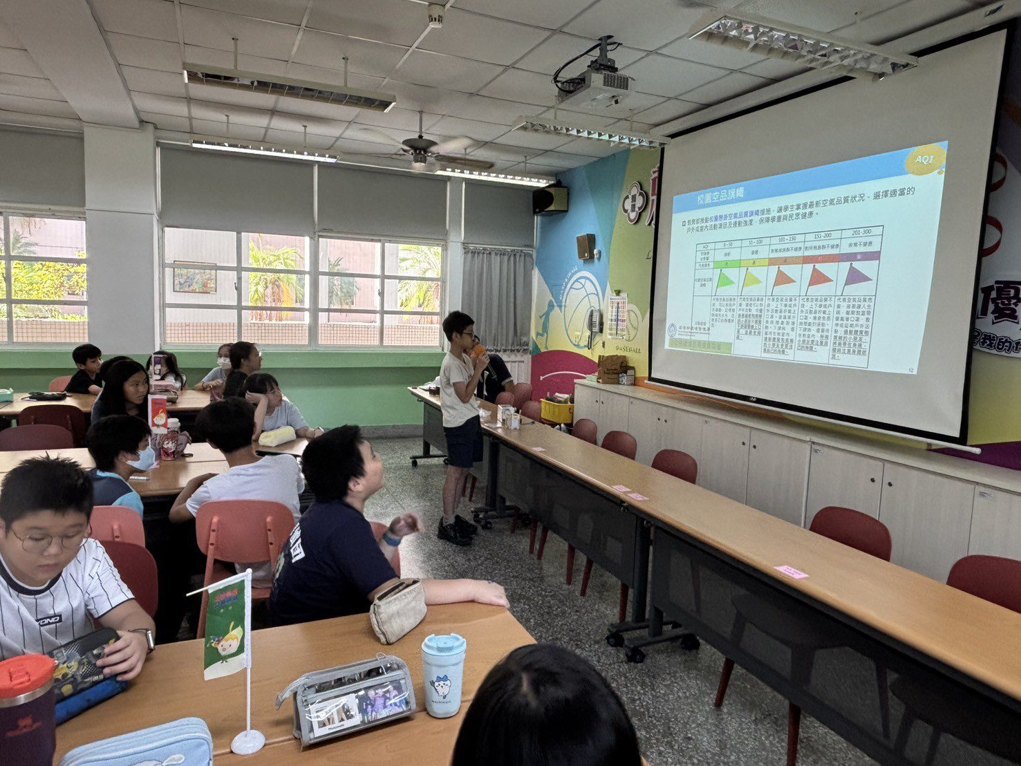 此外,教育局也到台中市多所國中小校園進行宣導,宣導課程以「We need to change」為主軸,引導學生認識「空氣品質旗幟」,並從生活習慣反思污染源。活動透過互動體驗、遊戲學習及簡易實驗等多元方式,讓學生能認識空氣污染成因、健康危害與防護行動,了解不同等級的健康防護措施。