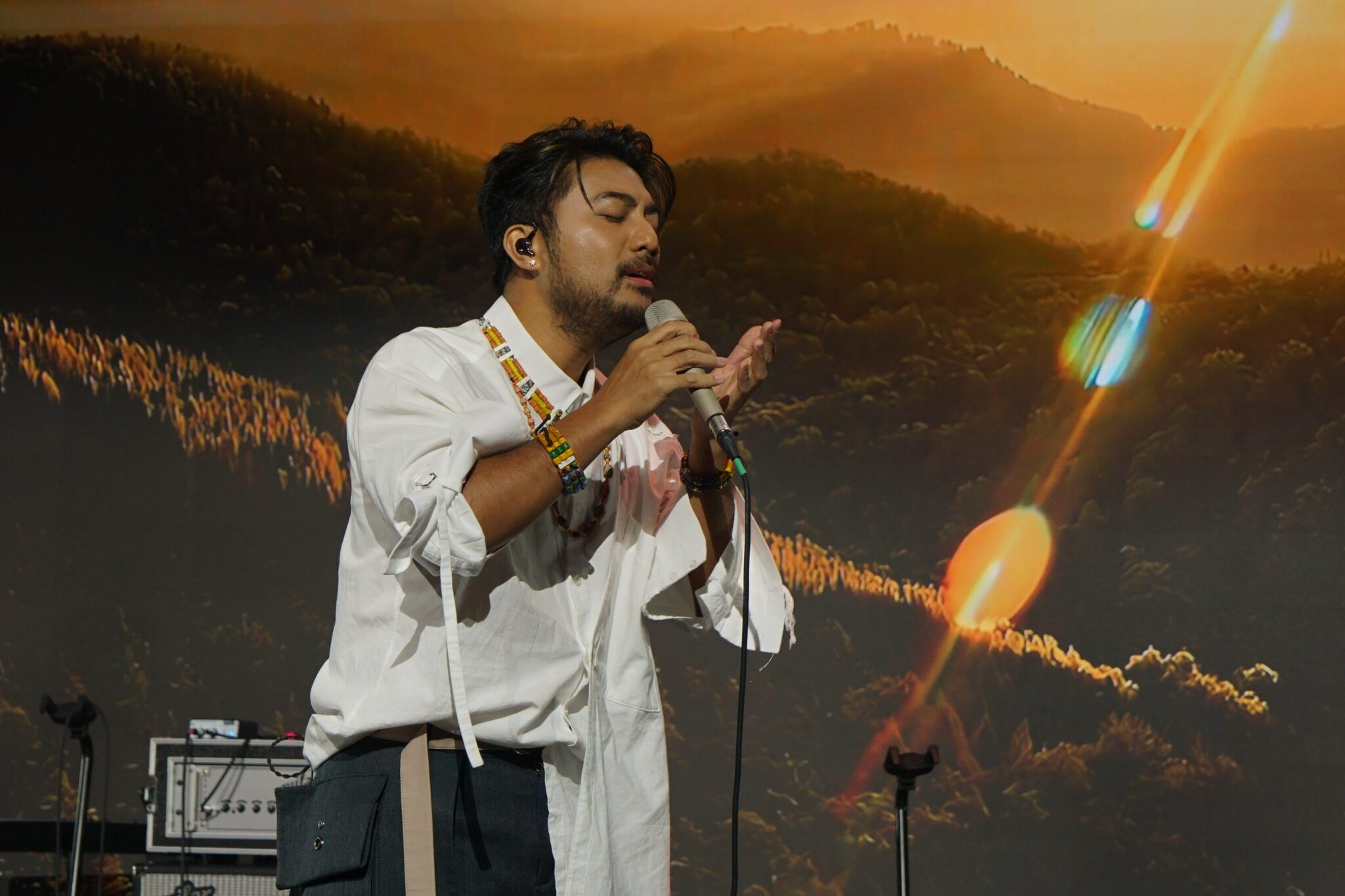緊接著,曾入圍金曲金音獎的排灣族創作歌手徹摩登場,他以迴盪山林原野般的渾厚嗓音詮釋「思念」,獨特的原民樂句與詩詞意境交織出深沉力量,讓全場靜靜聆聽、深深感動。