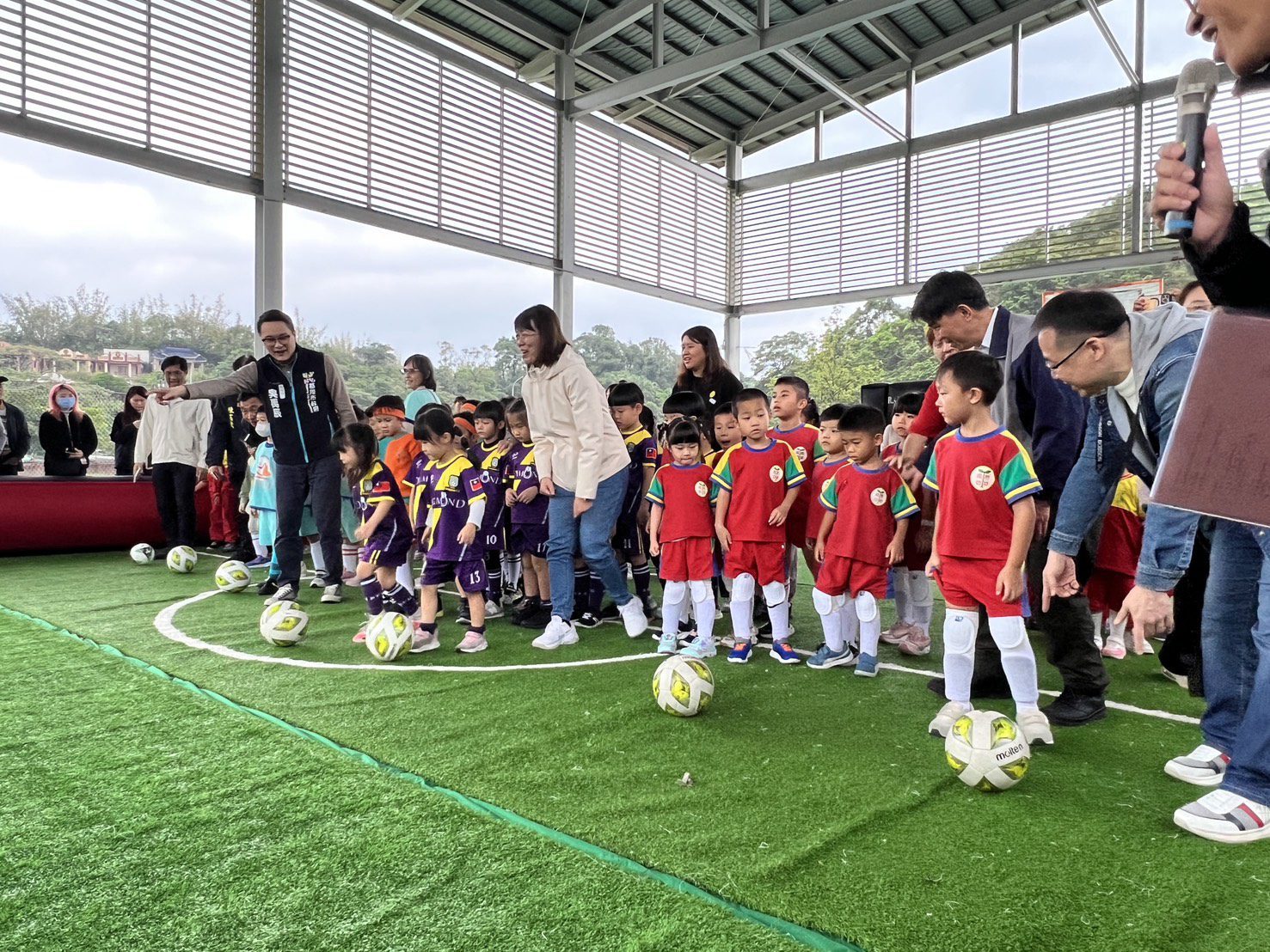 基隆市政府教育處今(21)日於深澳國小盛大舉辦「114年度幼兒園盃迷你足球賽」,本活動由市府與國立臺灣海洋大學合作辦理,因第一場比賽深獲家長與幼兒園熱烈回響,無論是在活動參與度或幼兒表現回饋上皆廣受好評,因此市府特別加碼再辦第二場賽事,讓更多園所及幼兒能親自走上球場、體驗足球樂趣。本次共有20所幼兒園、26支隊伍參賽,市府吳副發言人禹辰親臨主持開球儀式,向小小球員送上鼓勵,現場加油聲此起彼落,氣氛溫馨又充滿活力。