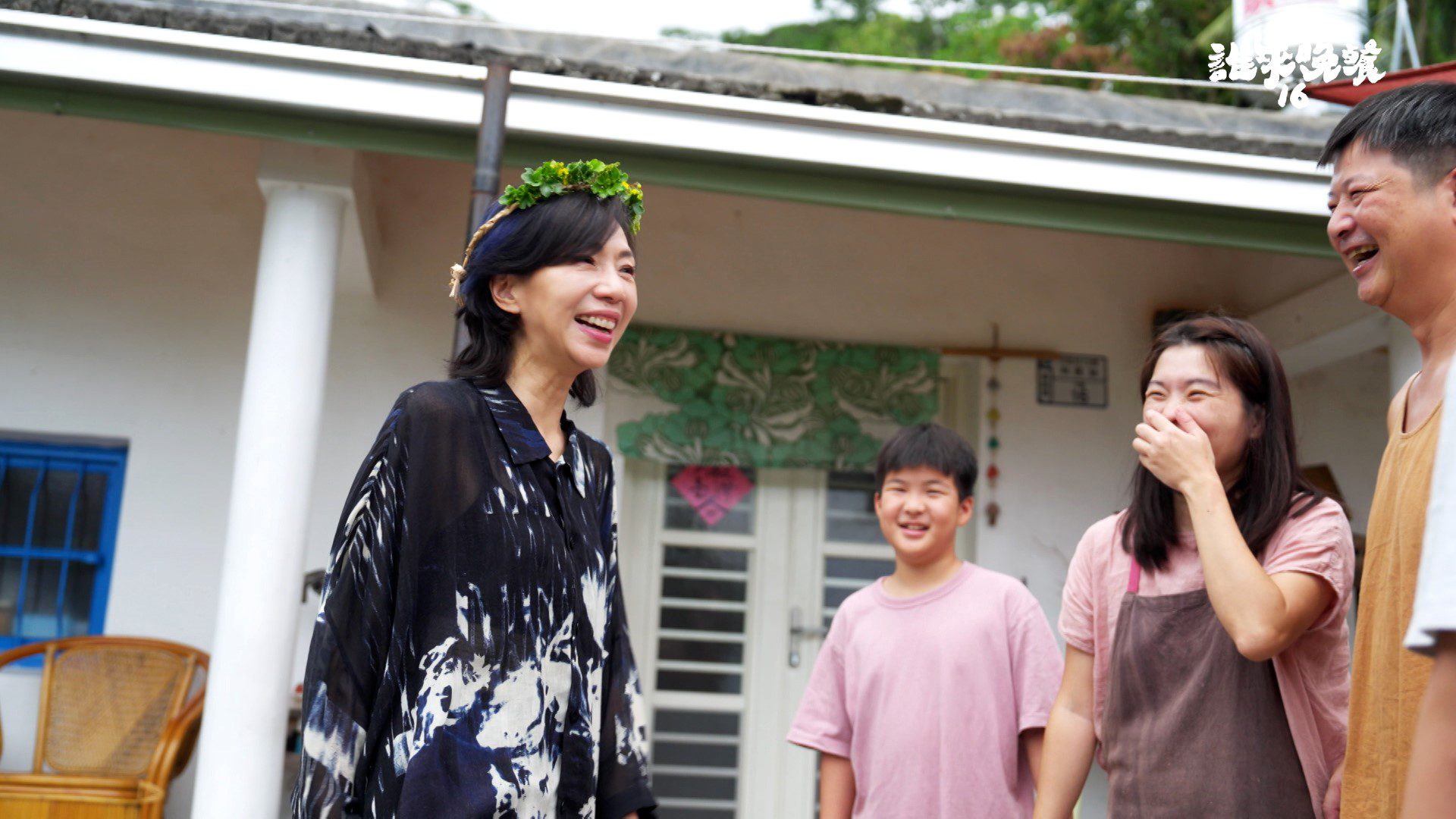 萬芳(左一)擔任節目嘉賓被贈手工花圈受到熱烈歡迎。   圖片來源:公共電視