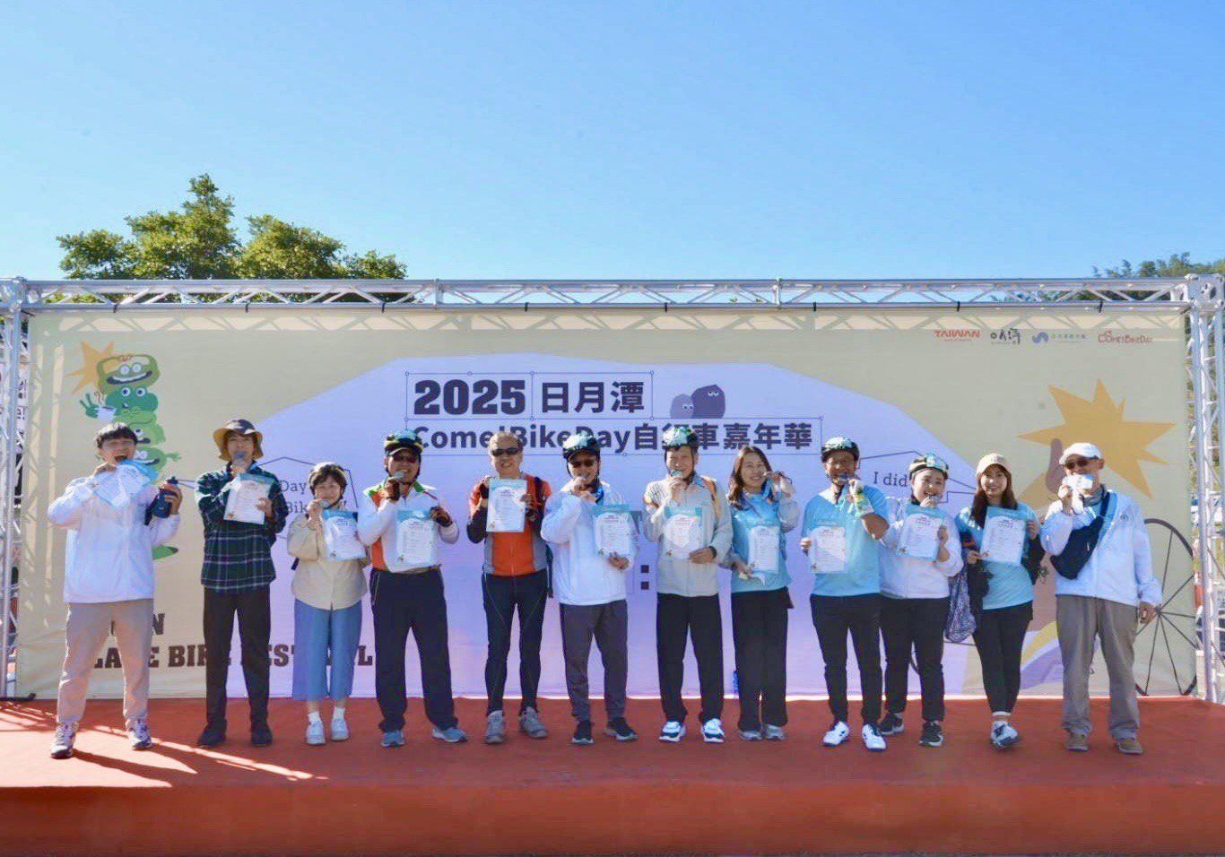 日月潭Come!BikeDay自行車嘉年華於今(22)日在風景如畫的向山遊客中心登場,超過千名國內外單車愛好者與親子家庭齊聚,開幕式邀請日本尾道市市長暨島波海道(SHIMANAMI JAPAN)理事長平谷祐宏、遊日盟族董事長高政能及自行車女神舒舒,與日月潭國家風景區管理處處長柯建興共同揭開活動序幕,展現台日自行車交流的緊密連結。