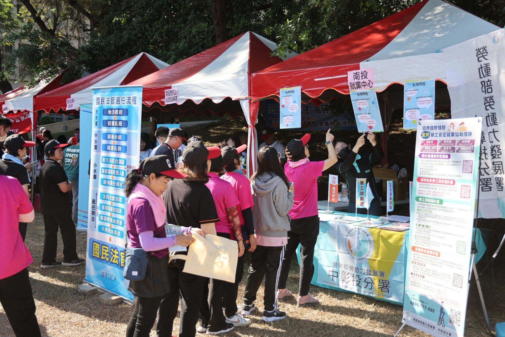 現場亦設置勞工權益宣導攤位,由縣府社會及勞動局、勞動部勞保局南投辦事處、南投地方檢察署及南投就業服務中心等單位共同參與,提供勞動法令、法治教育、就業服務等資訊,協助勞工掌握最新資源。此外,今年也特別安排「視障按摩服務攤位」,由專業視障按摩人員提供舒壓體驗,讓參賽者在競賽之餘身心放鬆,體現友善就業與社會支持的理念。