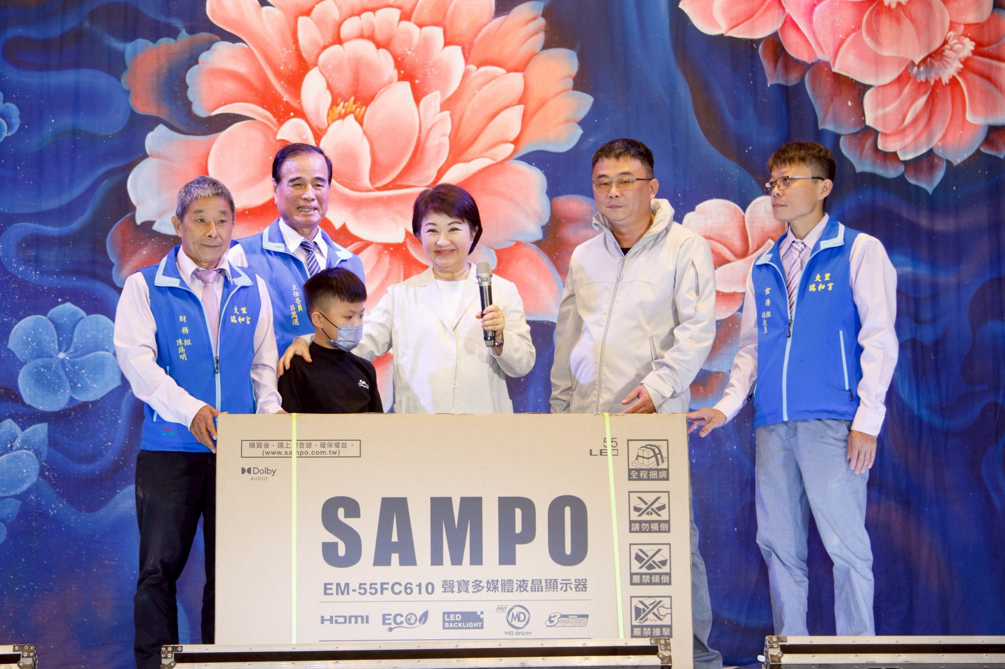 2025台中市傳統藝術巡演廣受好評,台中市政府文化局延續活動熱潮,今(23)晚邀請「明華園日字戲劇團」於大里瑞和宮廟埕帶來經典戲碼《青陽大大爺》,另類詮釋「路遙知馬力」的趣味故事。市長盧秀燕特別到場,她感謝明華園日字團與瑞和宮共同推廣傳統藝術、傳承在地宗教文化,並致贈「慈光普照」匾額,肯定廟方長年護佑地方、投入公益的卓越貢獻。
