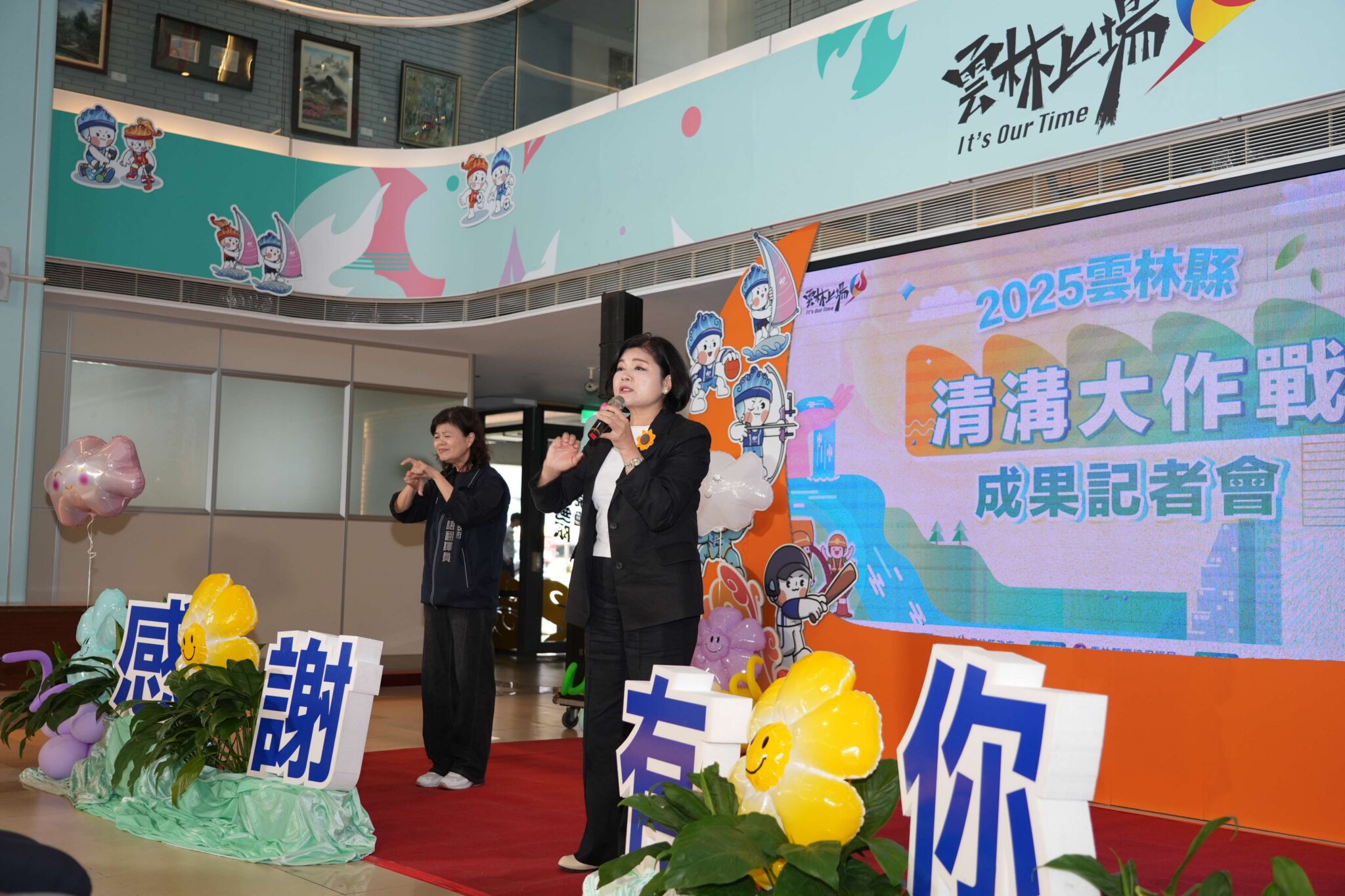 雲林縣環保局24日於縣府親民空間舉行「清溝大作戰」成果記者會。會中簡報縣內清溝大作戰具體行動方案與成果,並播放環保局協助花蓮光復鄉清理排水溝渠影片,展現雲林縣具備因應極端氣候,打造韌性排水疏洪基礎建設,也具備協助外縣市救災、復建能力。