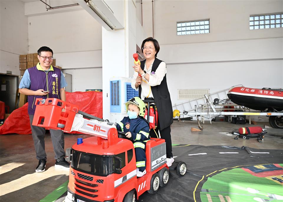 為了替4歲的白血病病童榤寶圓夢,Make-A-Wish Taiwan 喜願協會與彰化縣政府合作,今(24)日上午在鹿鳴消防分隊舉辦圓夢活動,讓榤寶體驗搭乘警車與消防車,縣長王惠美親自出席鼓勵。王縣長表示,榤寶在今年3月確診白血病後,勇敢地面對一次次住院與治療,從未讓病痛奪走笑容,感謝喜願協會促成這次合作,讓榤寶如願搭上警車與消防車。這不僅是實現夢想,更是為了讓孩子感受到被關懷與重視,期盼在艱辛的治療道路上給予力量,為孩子與家人帶來光明的希望。鼓勵孩子勇敢面對,相信愉快的心情加上良好的醫療,一定能讓榤寶身體恢復健康,快快樂樂長大。