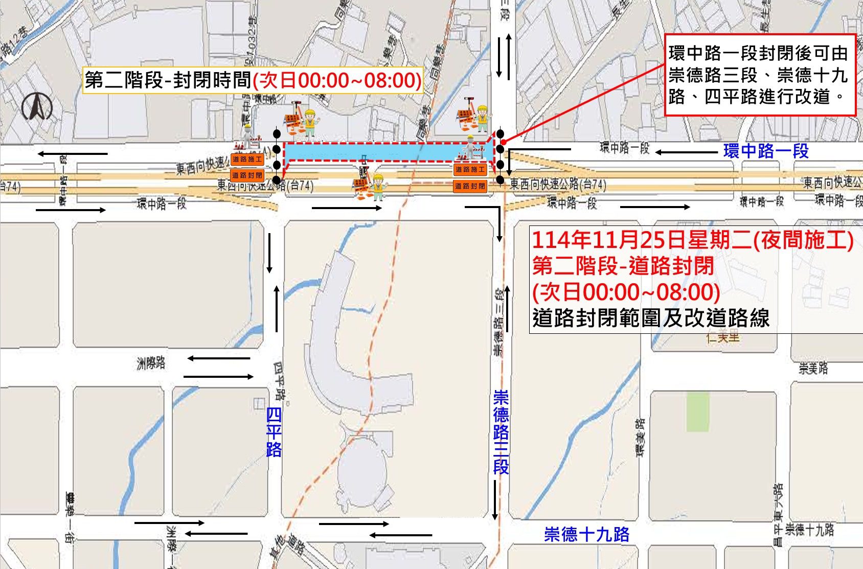 建設局進一步指出,此次工程道路標線之防滑係數將提升至 65BPN,並強化車道接縫處處理,以避免縱向裂縫形成;刨鋪後也將於 24 小時內完成標線恢復,確保行車安全與路面品質。環中路為北屯區重要聯絡道路,白天車流量龐大,施工期間建議民眾可改道崇德十九路、四平路等周邊道路,以分散車流、降低壅塞。
