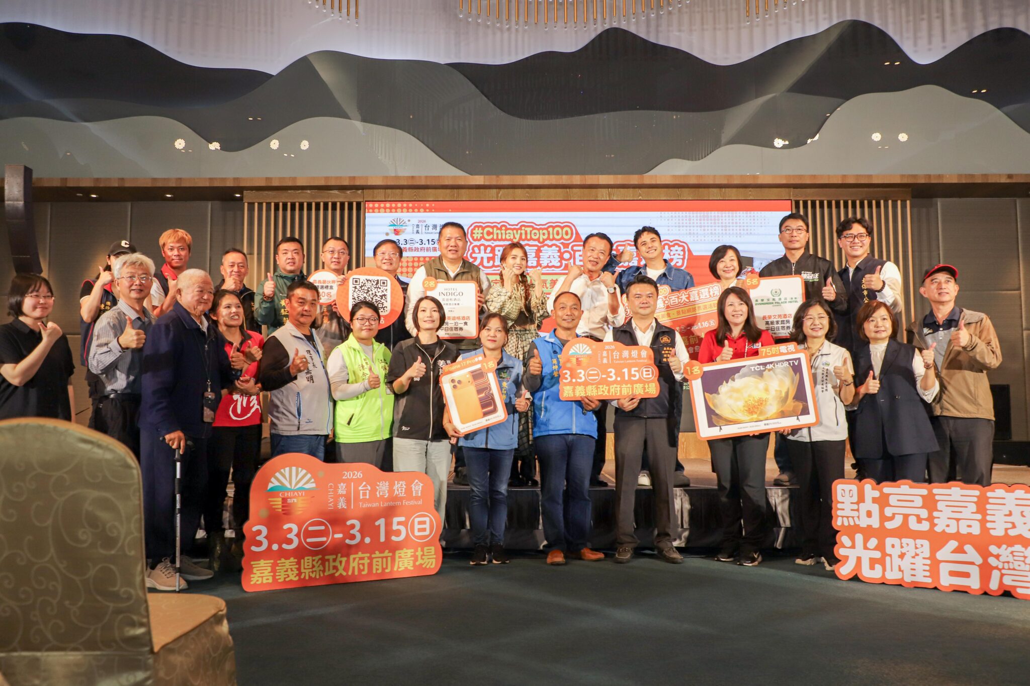 投票有機會抽中iPhone 17 PRO手機、75吋4K電視、阿里山英迪格酒店精品房一泊一食住宿券等大獎,還有嘉義縣長榮文苑酒店住宿券、嘉義鄒伙呷精選禮盒。115年1月2日將抽出首波獎項,2月9日頒獎典禮將抽出最大獎。
