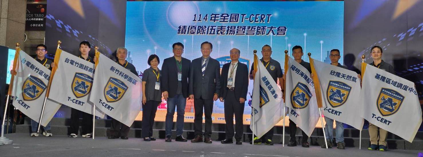 基隆市安樂區新山水庫T-CERT(民間自主緊急應變隊)隊伍榮獲績優隊伍表揚,另「基隆區域調度中心、欣隆天然氣、陽明海運股份有限公司基隆分公司及基隆區漁會」等4隊T-CERT隊伍啟動授旗。強化基隆市關鍵基礎設施的自我防護能力。