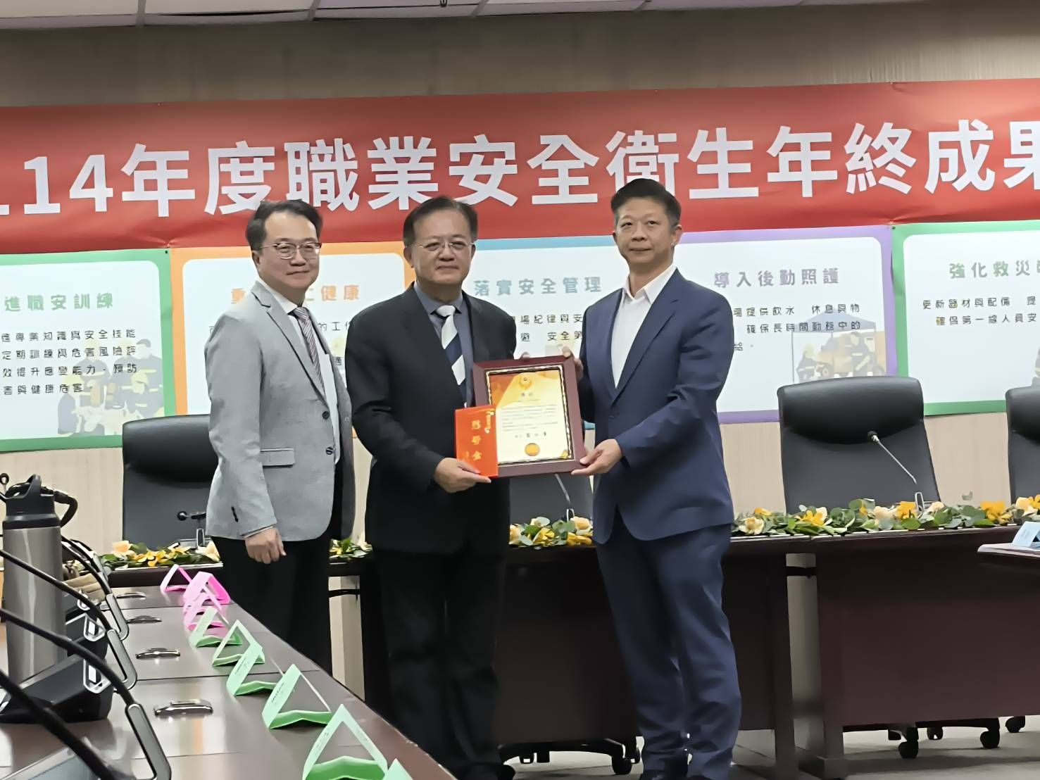 基隆市消防局榮獲在114年度「安全衛生管理制度卓越獎」。消防局以完善且系統化之管理文件為基礎,積極建置安全衛生管理系統,全面推廣至基層單位運作,提升消防人員職場安全。獎項由消防局長游家懿及計畫團隊主持人國立臺灣海洋大學顧承宇副校長共同代表領獎。