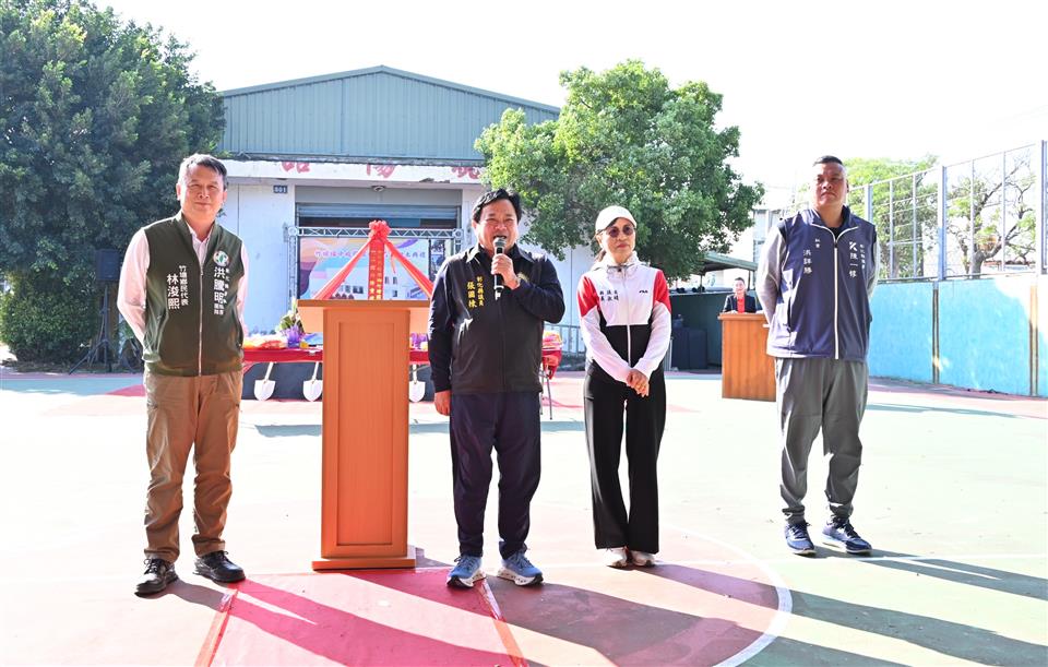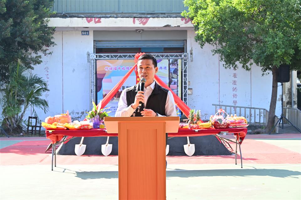 王縣長表示,感謝議長謝典霖及所有議員對於預算的支持,也感謝黃校長及所有師長努力辦學。竹塘雖然出生率不高,但辦學效率好,吸引周遭鄉鎮前來就讀,感謝地方士紳及家長會的支持,讓學校辦學無後顧之憂。未來新的活動中心完工後,將成為校園與社區共享的多功能空間,不僅提供師生進行體育課程、藝文展演與畢業典禮的場地,也在設計上規劃友善開放的大門,在兼顧校園安全的同時,提供給社區民眾共同使用。