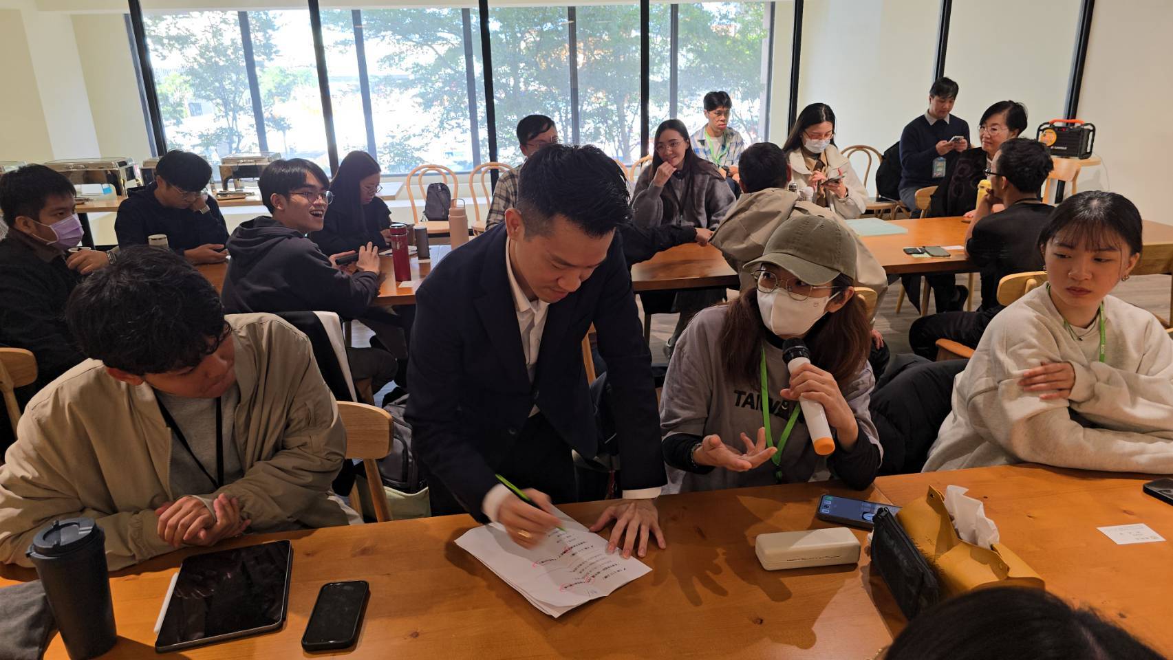 在現場提問時,有學員反映,桃園許多學校周邊仍存在「人行道不足、步行空間不連續、家長接送動線混亂」等問題,是塞車與安全疑慮的源頭。何志偉立即走向發言者聆聽並做筆記,承諾會請中央與地方研議改善,從生活最細微的地方開始,讓市民的交通壓力真正減輕。
