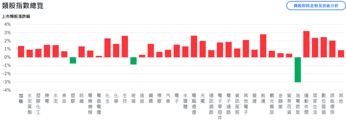 台積電穩居紅盤,電子權值股同步助攻,鴻海、緯創、廣達、台達電、日月光投控、奇鋐、緯穎勁揚3%以上。受惠Google TPU商機利多,聯發科強勢亮燈鎖在1300元,TPU概念股聯亞同步漲停,英業達、光聖、精成科滿面紅光。