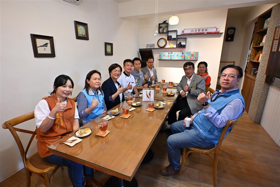 王縣長表示,彰化很有料,只是過去太低調,隱身在社區的「山寄製菓所」由彥霖一手創辦,原本從事美髮用品業務的他,因喜歡烘焙且擁有烘培證照,平日就會手做甜點與親友分享,廣受好評。103年開始在三民市場擺攤販賣手作糕點,一開始雖不順利,但在努力不懈下,重新調整創業模式,112年成功爭取到縣府青年創業補助,縣府也提供創業輔導,協助優化品牌形象,逐漸打響知名度,並榮獲112年彰化建縣三百年金好禮十大伴手禮殊榮。今年獲得經濟部商業發展署補助重新整修店面空間,以全新樣貌招待客人,提供更優質的消費體驗。