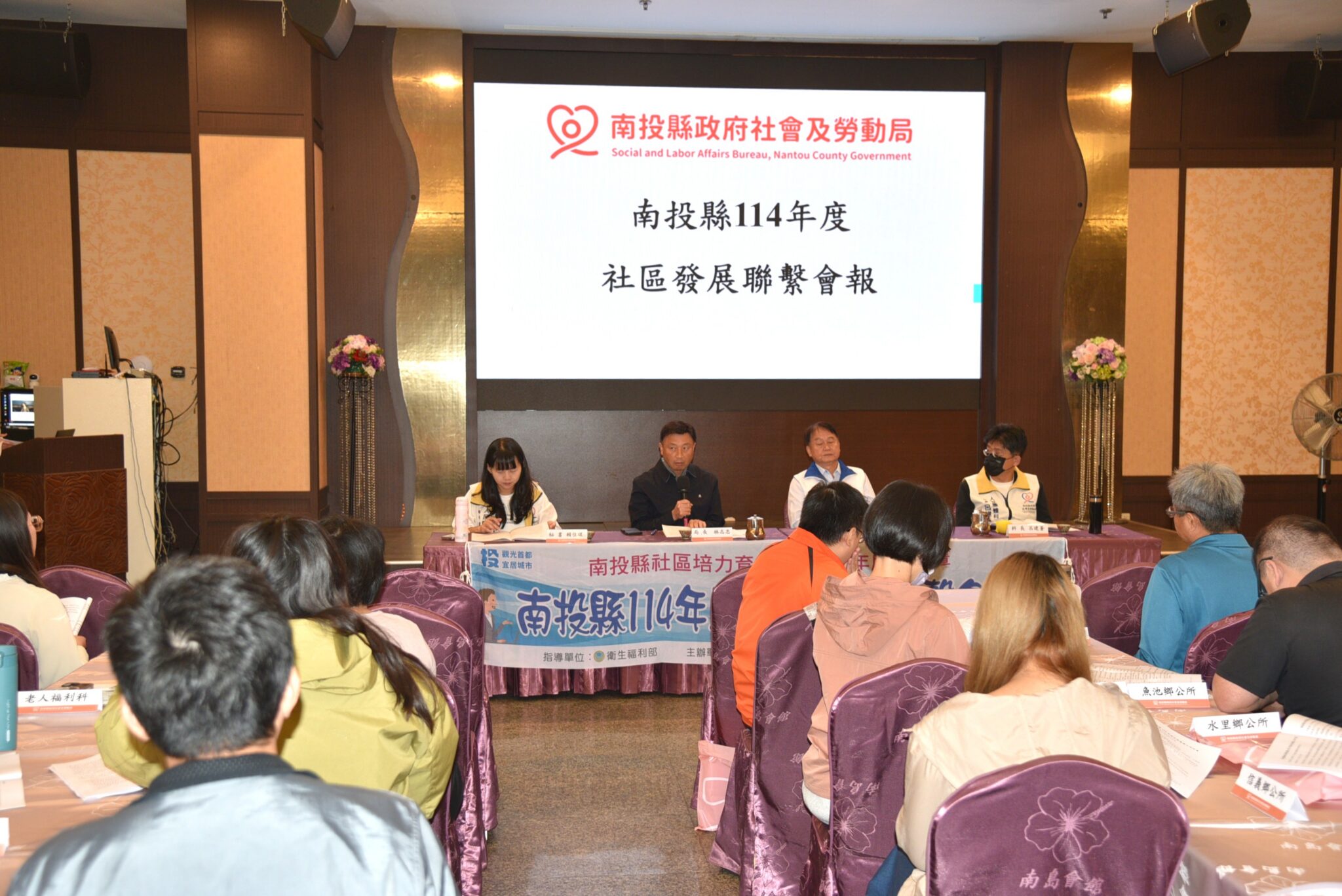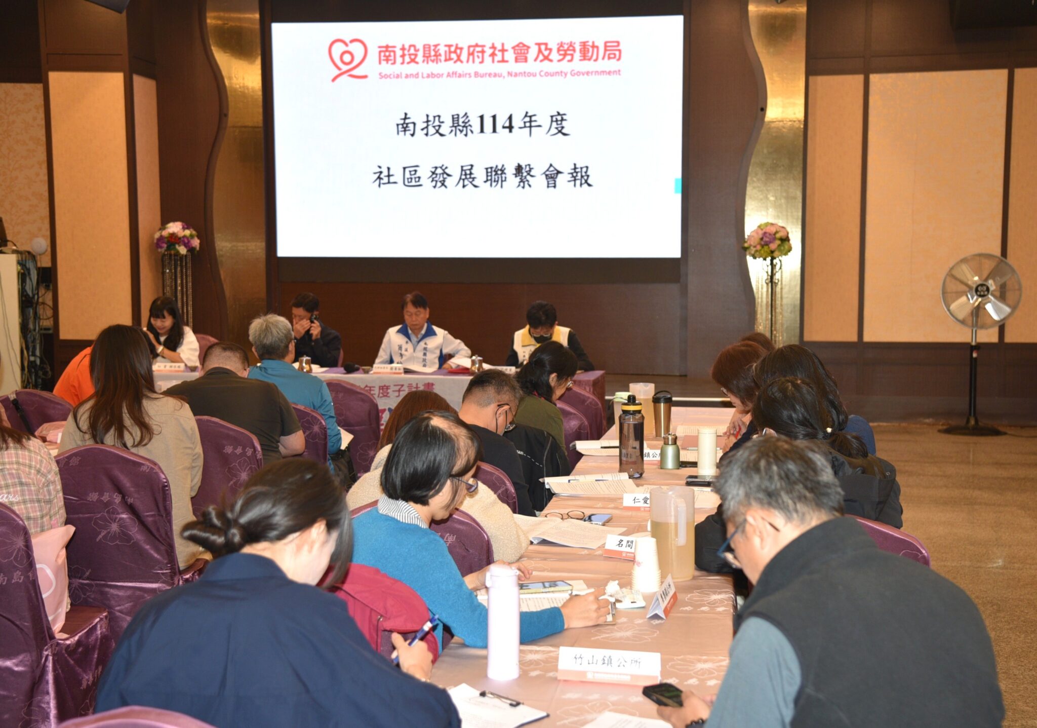 南投縣政府社會及勞動局11月26日上午在南島會館會議室辦理「南投縣114年度社區發展業務聯繫會報」,本次會議共有 41 位代表出席,包括全縣 12 個鄉鎮市公所的社區主管與承辦人員,以及縣府8 個局處的相關業務單位,共同就社區發展政策、推動成效及跨域合作進行交流與研商。