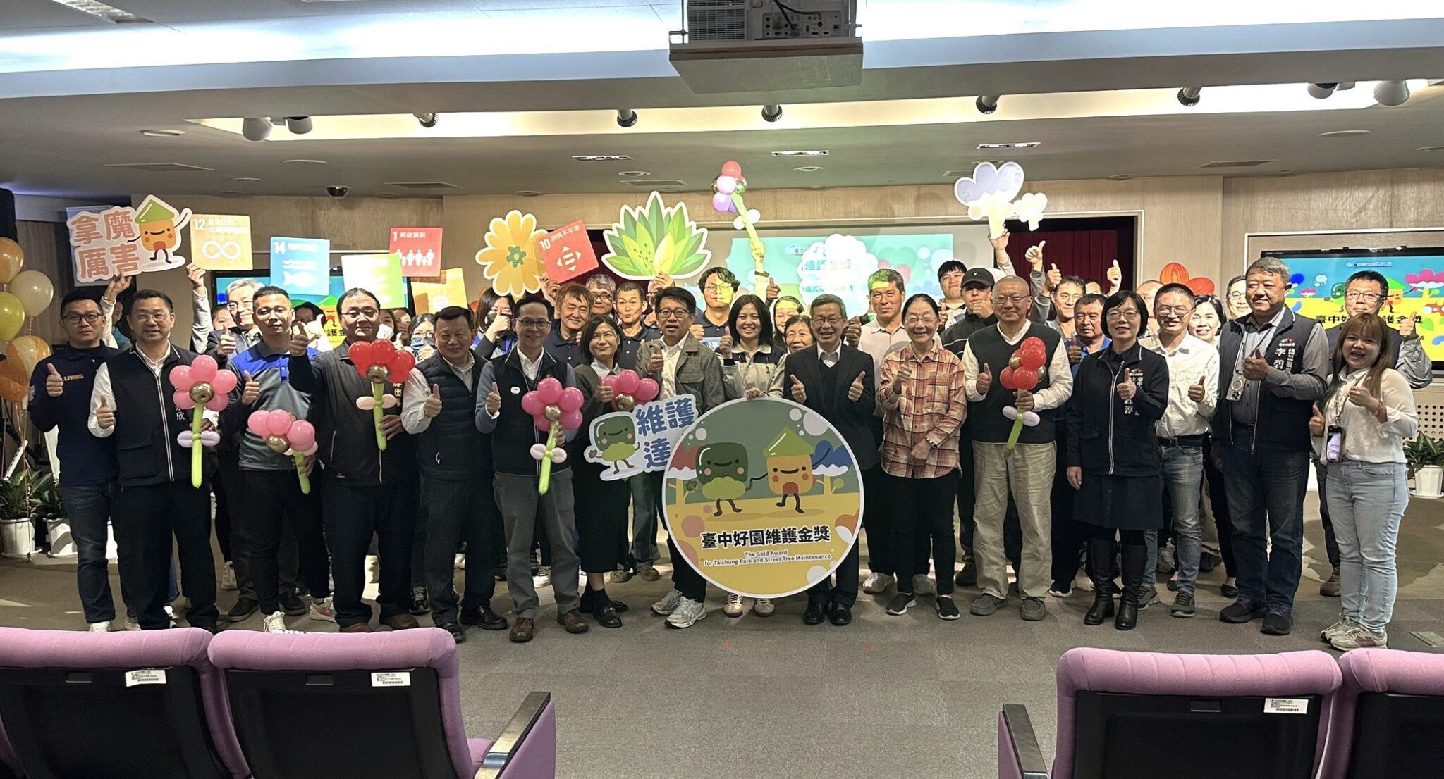 台中市長盧秀燕重視公園綠地的維護品質,為激勵維護單位強化日常養護並提升維護效能,首創「台中好園維護金獎」;市府建設局今(27)日舉辦頒獎典禮,由建設局長陳大田代表市長盧秀燕表揚在公園與行道樹維護上表現卓越的廠商與承辦單位,透過專業評鑑機制促進環境品質提升,打造台中成為宜居綠城市。