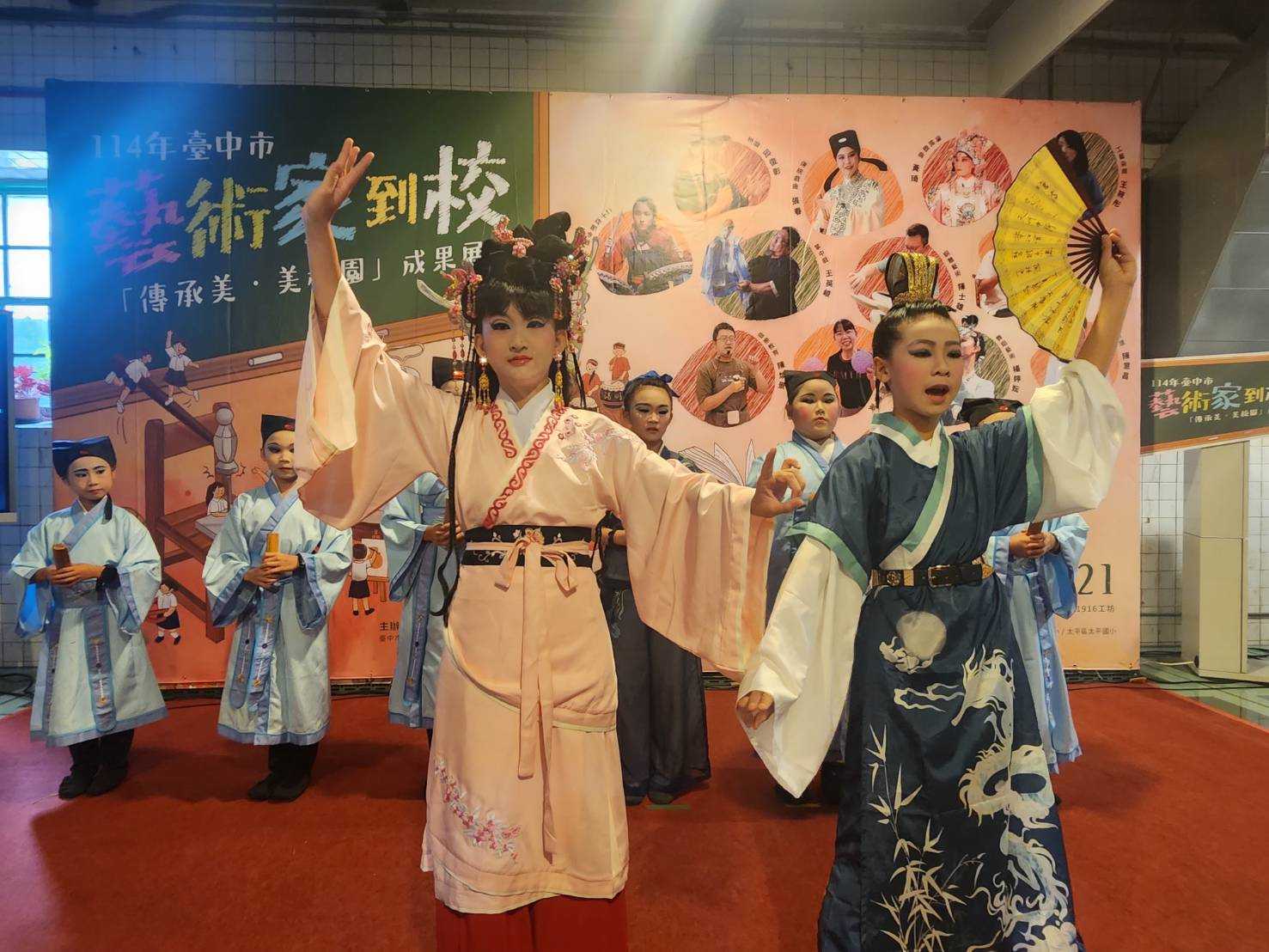 教育局表示,此次成果展呈現各校依據校園特色與社區脈絡,與藝術家共同打造的豐富成果。例如,新社區中和國小與黃琦、張春玲及儲見智等藝術家合作,深化戲曲課程並將校園打造為社區共享的美感教育基地;北屯區逢甲國小在顏桂英藝術家引導下,以天然素材進行藝術創作,實踐「生活即美、創作即學習」的理念;豐原區福陽國小由邱俊彰、陳意昌藝術家帶領,透過製作迷你小電鍋碗,展現「美學生活化、生活美學化」的精神;西屯區東海國小在楊婷妘、徐瑋翊及黃育倫藝術家引導下,透過多國舞風體驗,讓孩子從肢體律動中理解舞蹈之美;大肚區瑞峰國小則由陳士雄藝術家帶領,以大肚山在地特色為發想,引導學生透過銅雕創作認識並關懷環境。