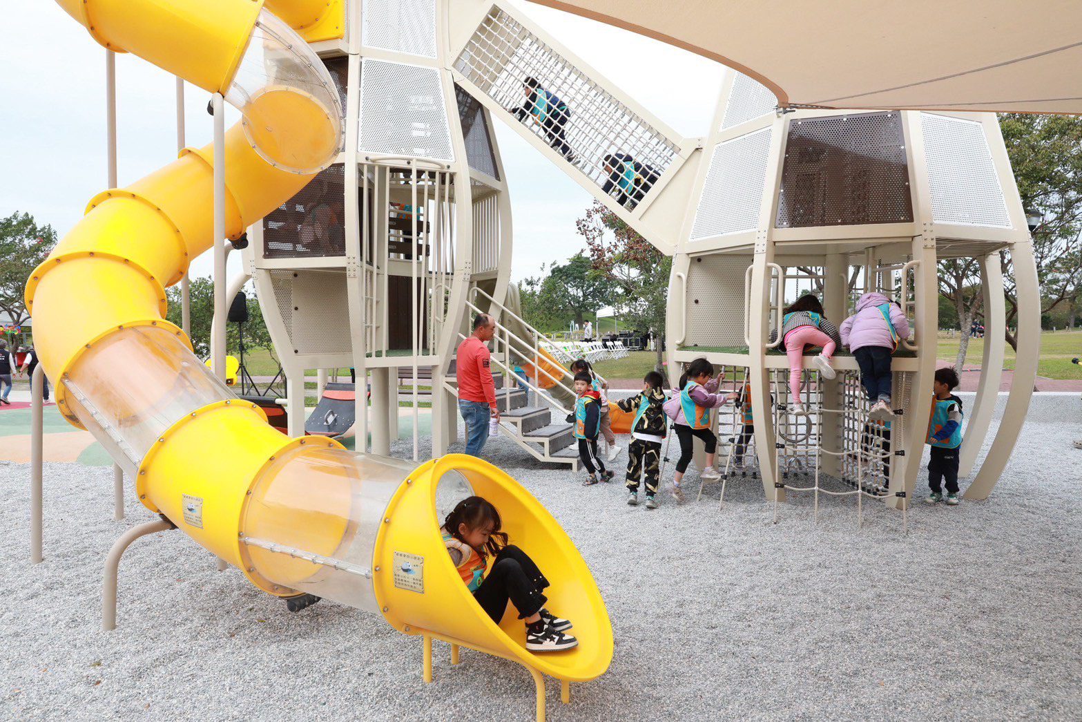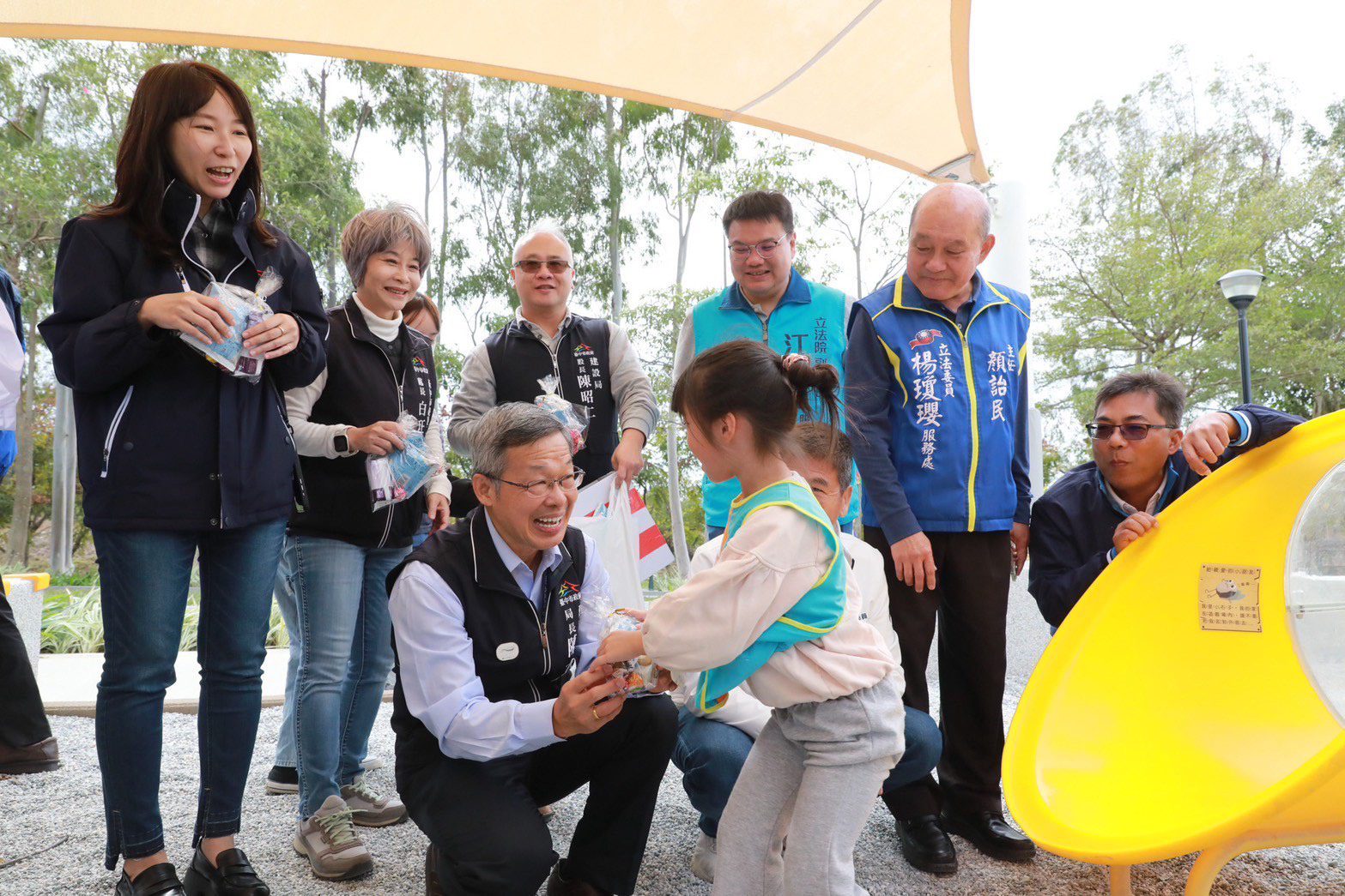 「后里環保公園」是后里區重要的綠地與市民休憩場域,為強化公園的多元功能,台中市政府投入1,584萬元打造全新的「孩籽世界遊戲場」,今(27)日正式啟用,由建設局長陳大田與秘書處長謝佳蓁代表市長盧秀燕出席啟用儀式,為后里再增添一處兼具教育與娛樂的親子新亮點;遊戲場以「環保」、「生態」與「交通學習」三大主題為核心,打造寓教於樂、充滿創意的遊戲環境;活動中,陳局長也宣布后里環保公園即將迎來新成員「黑天鵝」,消息一出讓小朋友驚喜不已,也展現市府持續推動友善親子空間的用心與決心。