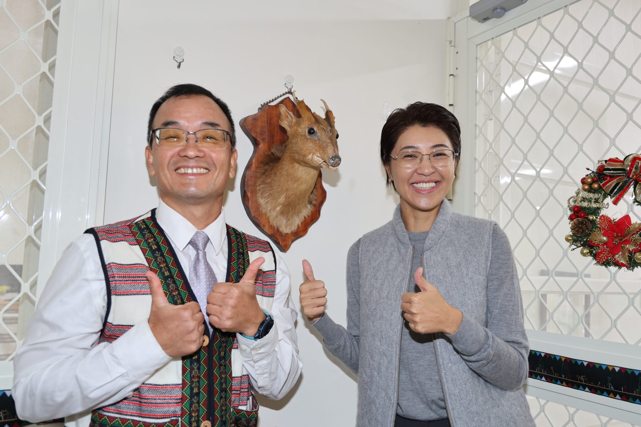 談及潭南國小的教育成果,許縣長特別稱讚學校在布農族文化的傳承、母語教學及與社區部落結合上的優異表現。她並高興地分享說,潭南國小的孩子在這次音樂比賽中榮獲特優獎,展現了在地文化傳承的重要性。「我們會跟鄉公所持續合作,推動在地學習和原住民文化傳承。」許縣長承諾,縣府將以更堅定的決心,為孩子們爭取更多資源,共同建構一個能夠讓孩子在才藝與文化上發光發熱的學習環境。
