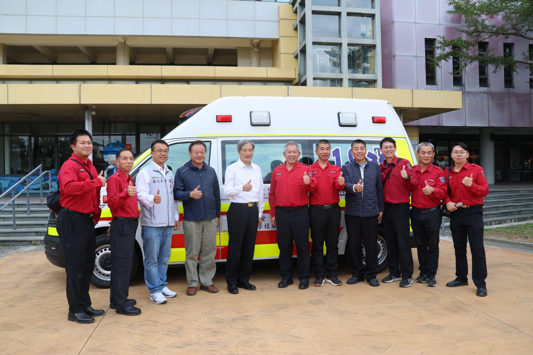張縣長說,感謝金黛敏女士以母親之名行善,不僅展現深厚的孝心,也象徵無私奉獻的精神。也感謝蘇俊豪議員促成這份充滿愛心的善舉。縣府將妥善運用這部救護車,幫助需要的鄉親,精進救護品質,打造安全、溫暖的雲林。