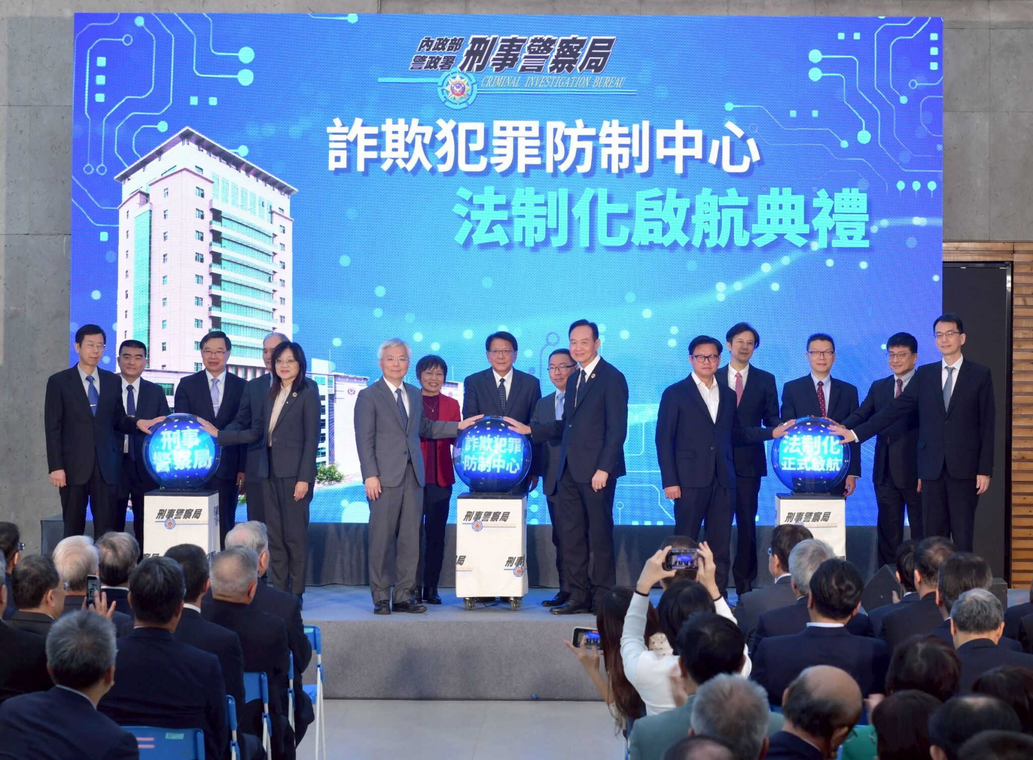 內政部警政署刑事警察局「詐欺犯罪防制中心法制化作業」,分別經考試院114年9月25日第14屆第39次會議審議通過、行政院10月14日核定,11月7日修正發布並生效實施,今(28)日舉行「詐欺犯罪防制中心法制化啟航典禮」,宣告我國防制詐欺工作正式邁向專責化、制度化的新階段。典禮由內政部劉部長主持,總統府潘秘書長、行政院林政務委員及多個部會首長皆親自出席,展現政府從中央到地方、跨部門到民間企業共同強化防詐量能的決心。