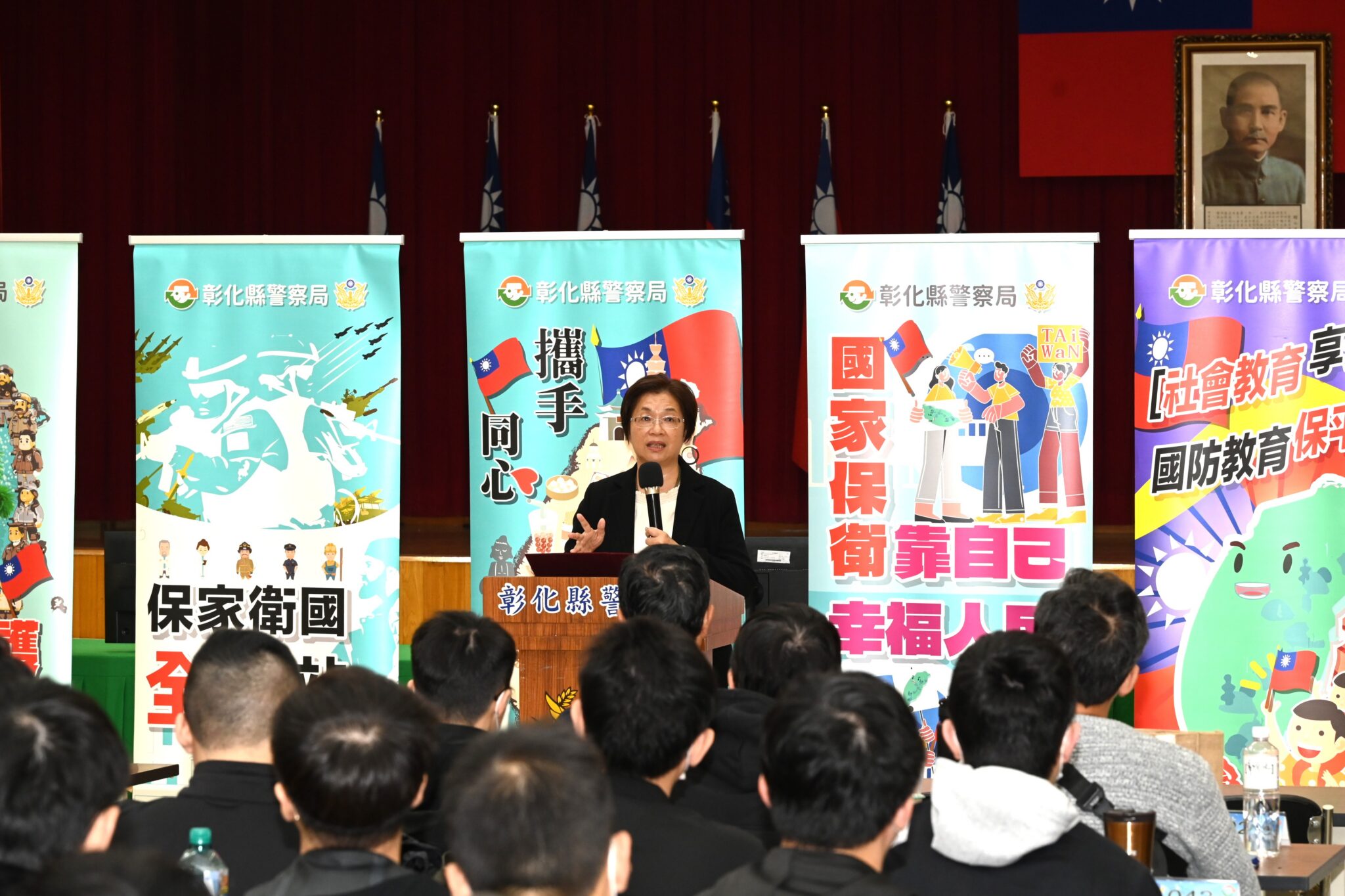 彰化縣警察局於今(28)日上午於縣警局6樓禮堂辦理114年替代役備役役男治安維護組第3梯次第3天訓練,共125人到訓,縣長王惠美特撥冗勉勵。王縣長表示,本次訓練以協助「社區治安維護」為核心,結合「全民防衛教育」、「自救與互救」、「避難疏散」、「協助道路交通事故處理實務與法規」等課程,包含學術理論與實務操作,內容豐富多元。王縣長感謝備役役男放下手上工作,配合政府政策參與治安維護訓練,支持地方災防應變與治安協勤,未來將成為民防戰備的關鍵角色。這不僅是國家義務,更是對整個社會的責任與承諾。