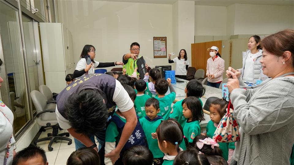 為讓小朋友能以輕鬆、有趣的方式了解警察任務,特別安排偵查隊拘留所導覽,由同仁介紹相關設施與勤務內容,讓師生與家長更貼近基層警方的日常。此外,分局亦同步規劃多元化的宣導課程,包括「反詐騙基本觀念」、「婦幼安全保護」、「幼兒適齡交通安全教育」等主題,以淺顯易懂方式教導孩子重要的安全觀念,並提醒家長注意日常生活中可能遇到的風險。
