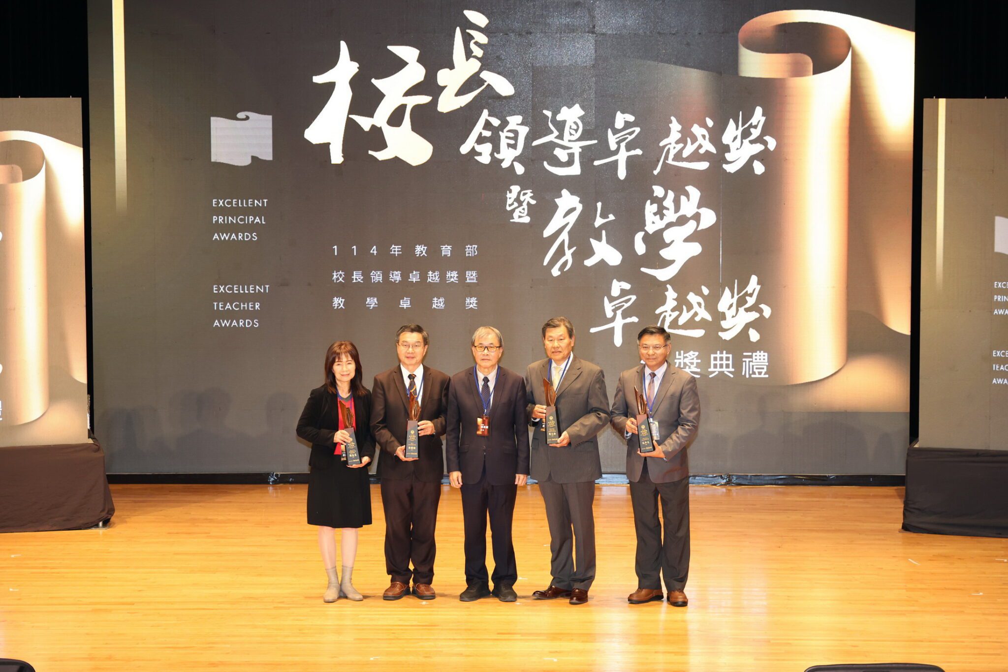 114年度校長領導卓越獎全國共有56位校長獲各界舉薦參加複選,最終評選出包括高級中等學校組4位、國中組5位及國小組11位,共20位校長獲獎。另外,114年教學卓越獎,全國共計101所教學團隊參與複選,在公平嚴謹的評選機制下,最終評選出7所高中職、9所國中、14所國小及10所幼兒園,總計40所入圍最終決選名單,並於頒獎典禮現場直接揭曉金、銀質獎得主,金質獎團隊將可獲得60萬元獎金、銀質獎可獲得30萬元獎金。