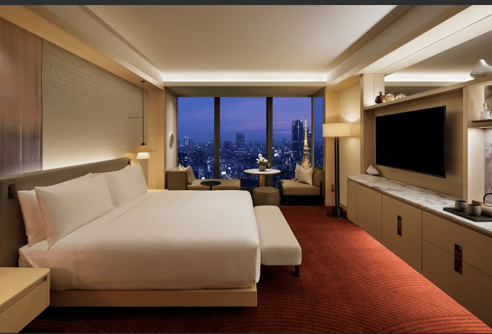 全館217間客房(含29間高級套房)皆超過52㎡,設計典雅,注重細節與奢華感。多數房型配備大型窗戶引入自然光,享受東京鐵塔或東京灣景致陪伴入住;部分房型設有日式縁側區,在每一方寸之間,流露出都市綠洲的從容與雅致。