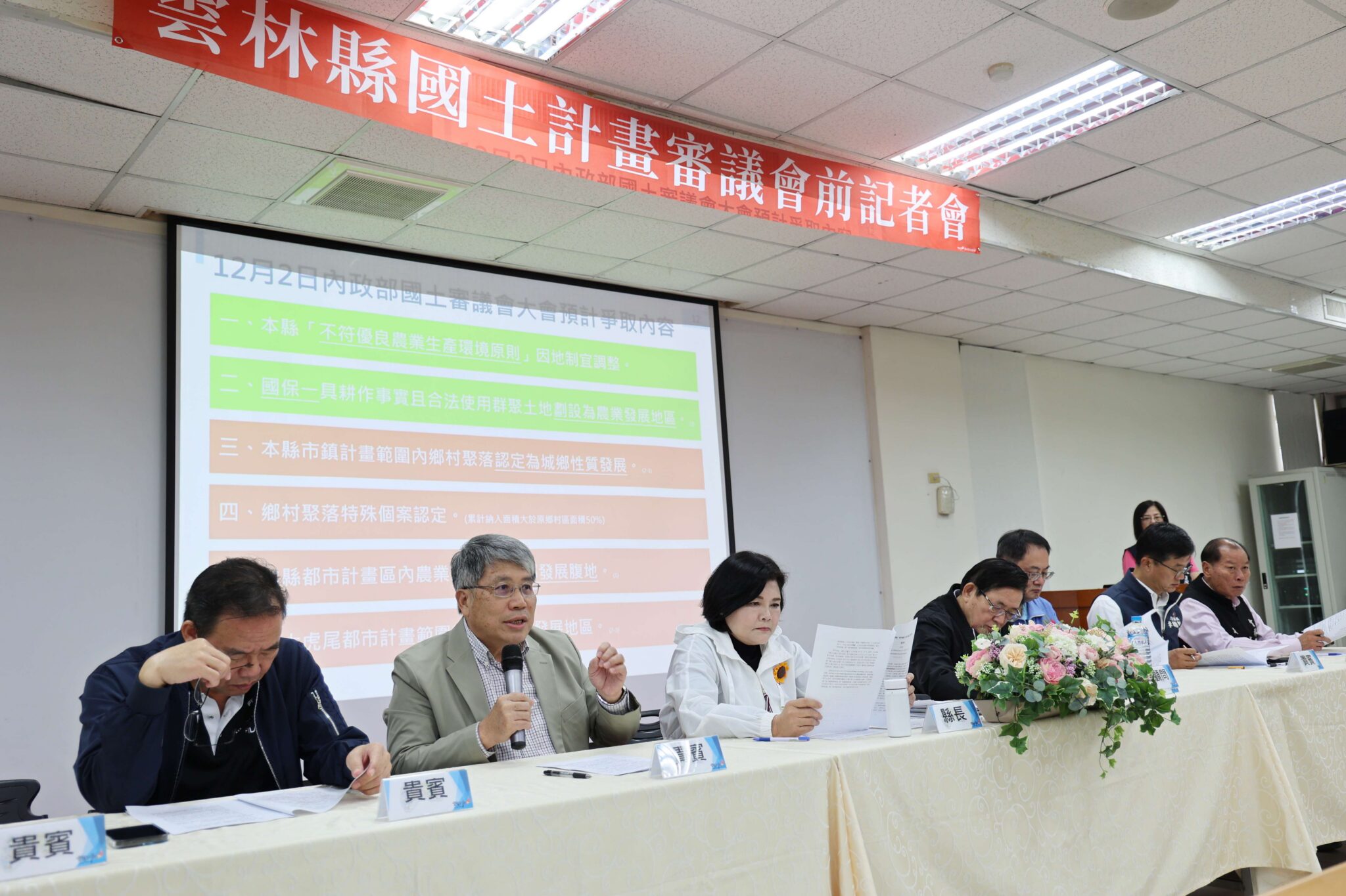 隨內政部國土計畫審議委員會將於114年12月2日(星期二)召開雲林縣國土功能分區圖審議會,雲林縣長張麗善12/1特別偕同縣政總顧問張清良、縣府秘書長曾元煌、地政處、農業處、城鄉處、民政處、新聞處團隊,並邀集專家學者、民意代表、鄉鎮長、農會總幹事齊聚一堂強烈表達「農地不要階級化」訴求。