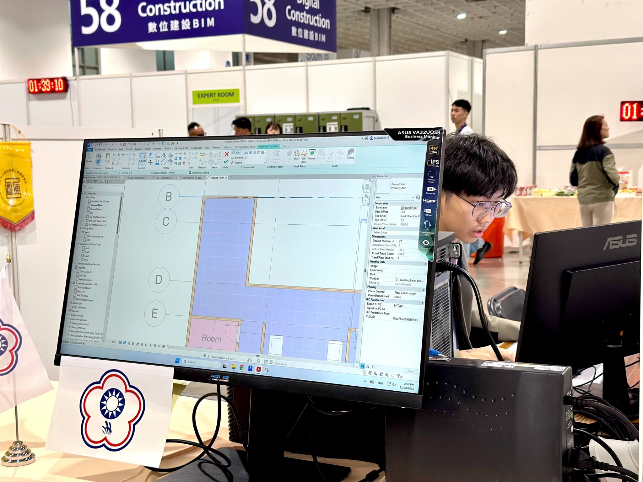 在數位建設BIM職類奪得銀牌的劉同學,本職類主要為評鑑選手如何運用數位化、3D建模與營建管理軟體,規劃、設計和協調,應用於各種虛擬的建築或工程專案,以展現以建築資訊模型整合、規範應用與跨域協作能力。他提到,全程以英文應試是最大挑戰,因此備賽期間特別加強英文資料閱讀與軟體英文介面操作,為比賽奠定重要基礎。指導老師表示,語言與穩定度是此職類勝負關鍵,而劉同學沉著應對、穩健發揮,是他成功站上國際舞台的重要力量。