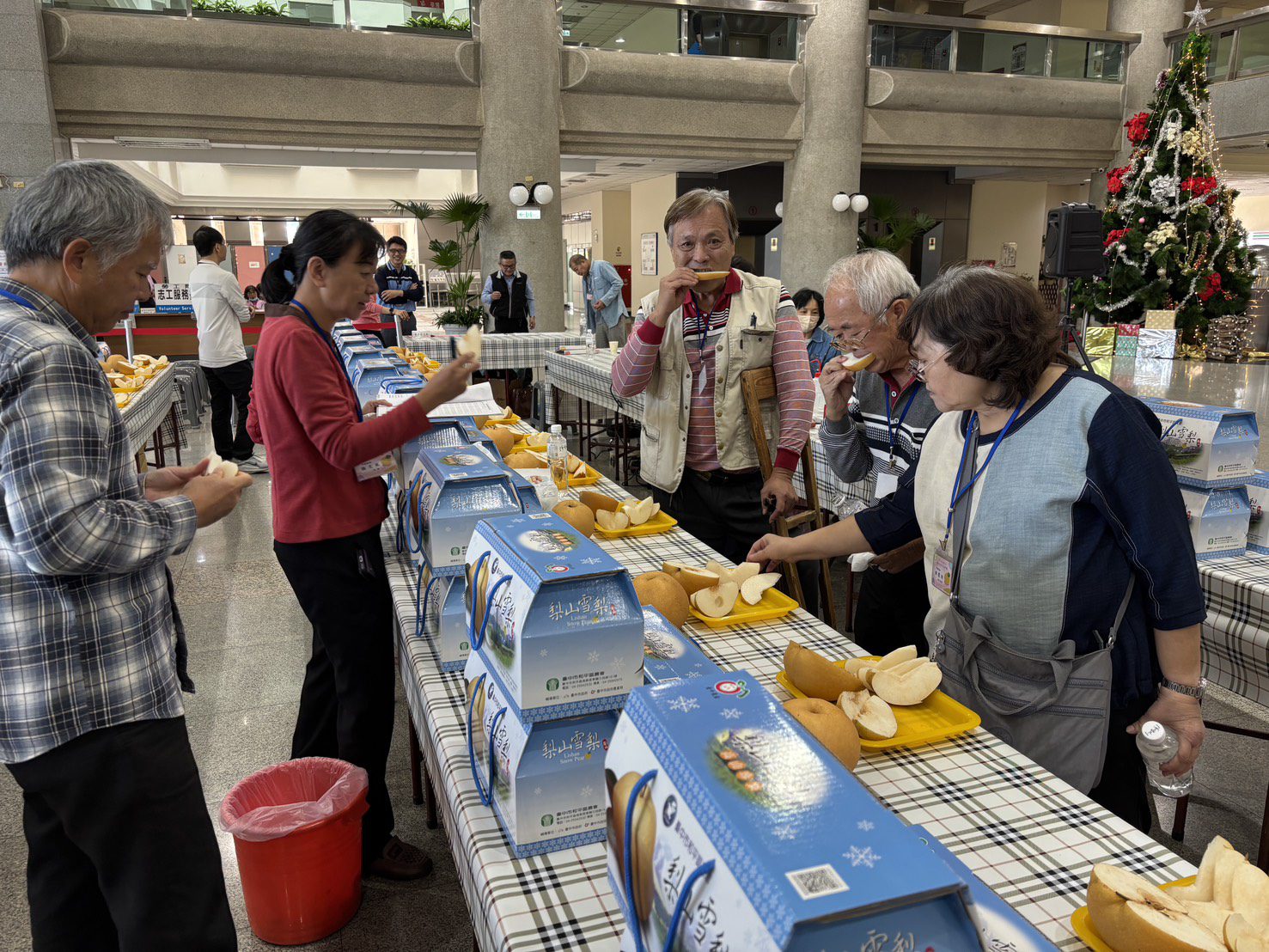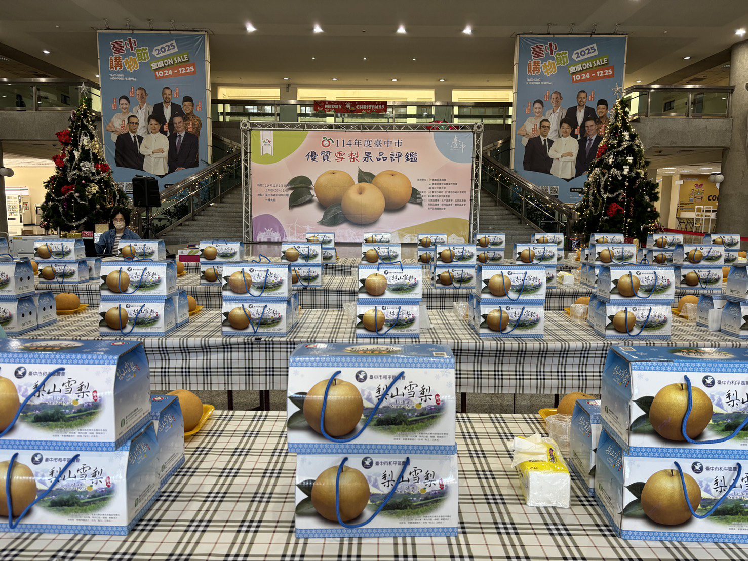 台中市雨量充沛、氣候涼爽宜人,加上農民長年累積的精湛栽培管理技術,使台中市所產雪梨品質優異、深受消費者喜愛。為守護食用安全並提升民眾選購在地優良梨果的信心,台中市政府農業局輔導和平區農會於12月2日在市府陽明市政大樓1樓大廳舉辦「114 年度台中市優質雪梨果品評鑑活動」。今年共有60組農友參賽,最終由和平區汪源杉脫穎而出,勇奪「114年雪梨王」!