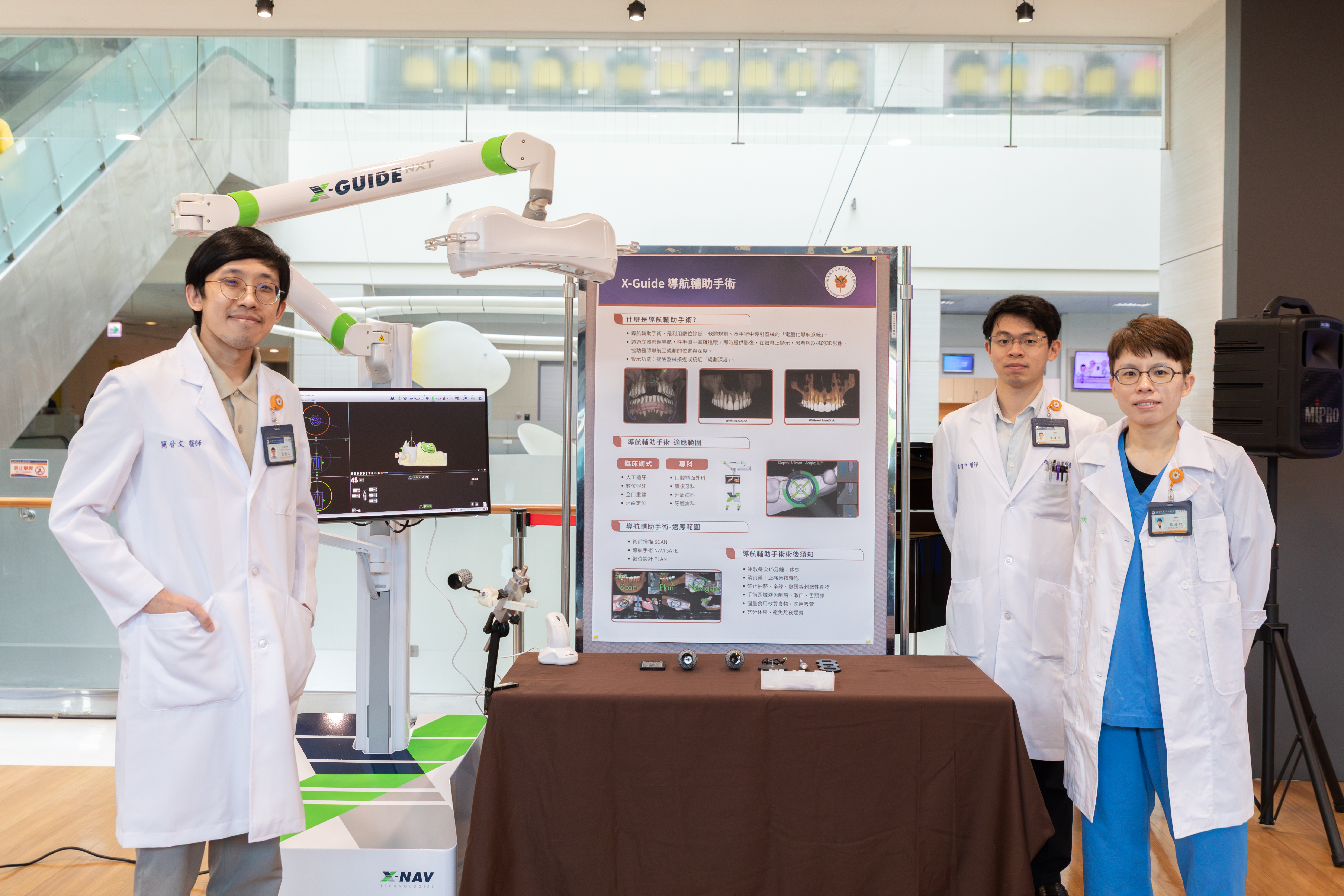 另外面對植牙的潛在風險,陽明交大醫院也引進新世代的「X-Guide 3D 植牙導航系統」,牙科張妤欣醫師說明,這套系統猶如「牙科GPS」,手術中利用光學追蹤,如同GPS導航即時導引器械和人工植牙方向,給予醫生更準確的資訊,提供比傳統精準11倍的植牙手術,不僅安全快速完成微創植牙,術後傷口小,降低腫脹疼痛感,縮短診療時間,部分患者更可實現「一日完成」的智慧化治療體驗。