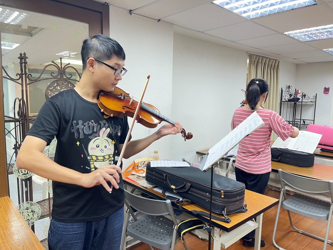 圖説:勞工學習小提琴。(勞工局提供)