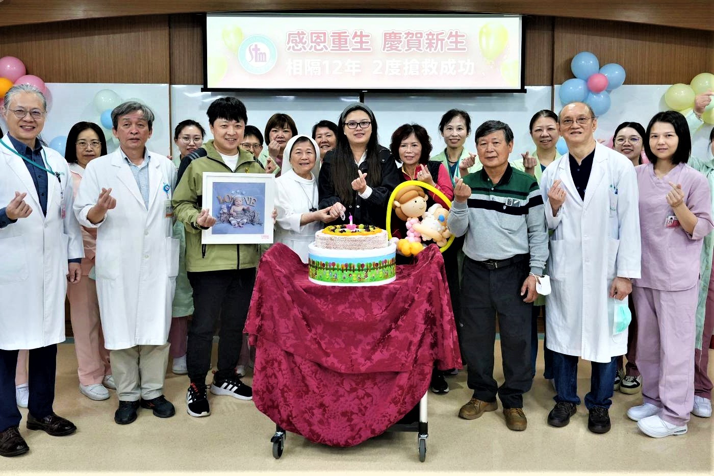 〔News586/記者侯姵伃嘉義市報導〕一名林姓產婦於十二年前在聖馬爾定醫院生產時突發「羊水栓塞」,一度命懸一線;今年十月,林女士再度回到聖馬爾定醫院迎接第二個孩子,沒想到生產過程中竟又發生同樣的情況,感人的是,當年守護她的醫療團隊仍堅守在第一線,經通力合作搶救下再次展現奇蹟,院方特別舉辦「感恩重生 慶賀新生」活動,慶祝她與寶寶都平安健康。