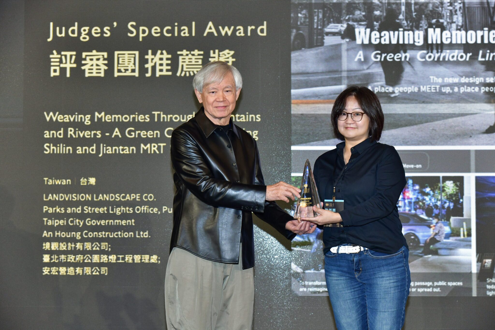 2025臺北設計獎吸引國內外設計界高度關注,今年競賽共收到來自62個國家、多達4,772件參賽作品,展現臺北在全球設計舞台的吸引力與能量。頒獎典禮於11月21日下午在臺北晶華酒店盛大舉行,其中「捷運綠廊串連人行動線(士林-劍潭站)更新工程」以作品《Weaving Memories Through Mountains and Rivers–A Green Corridor Linking Shilin and Jiantan MRT Stations》榮獲評審團推薦獎(Judges’Special Award),成為本屆城市公共空間類最受矚目的亮點之一。