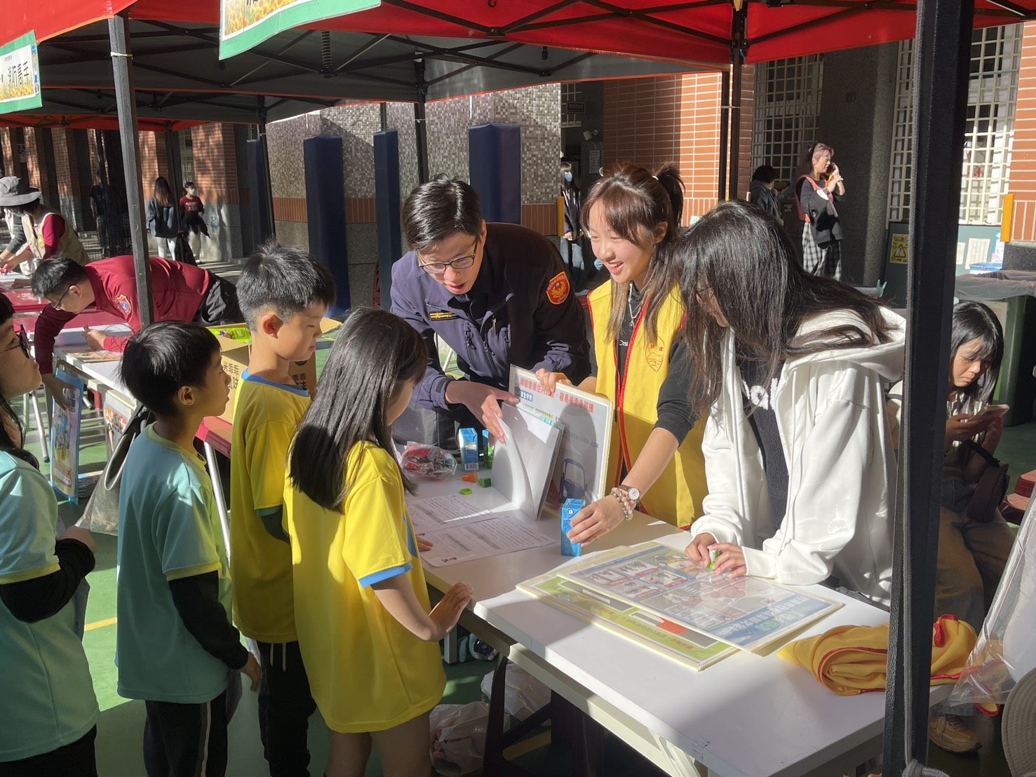臺北市政府警察局北投分局前往轄內關渡國小校慶暨體育表演會,結合實例與互動活動,向全校師生與參與家長宣導交通安全與防詐騙觀念,期盼透過生動有趣的方式,讓孩子從日常中建立正確的安全意識。