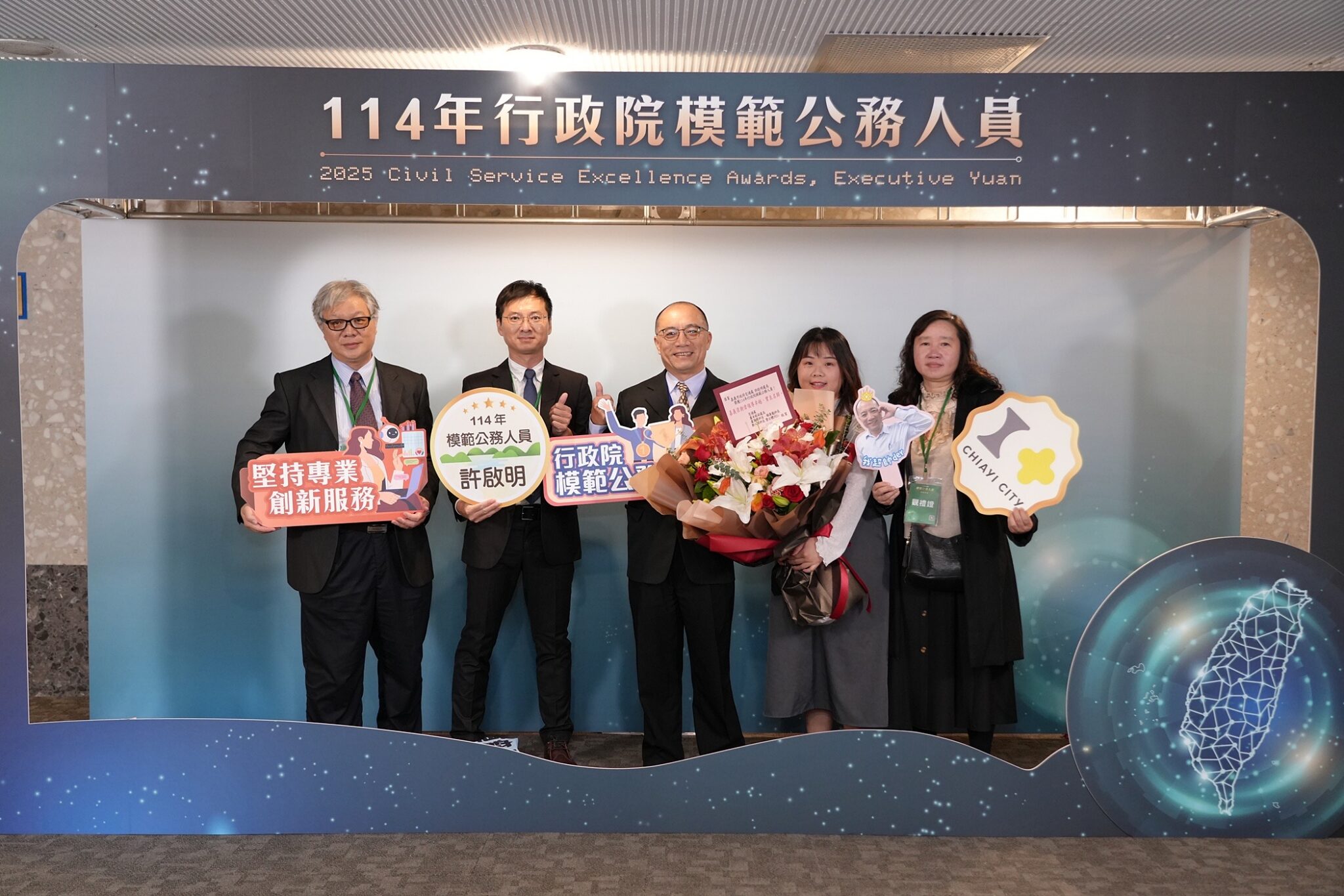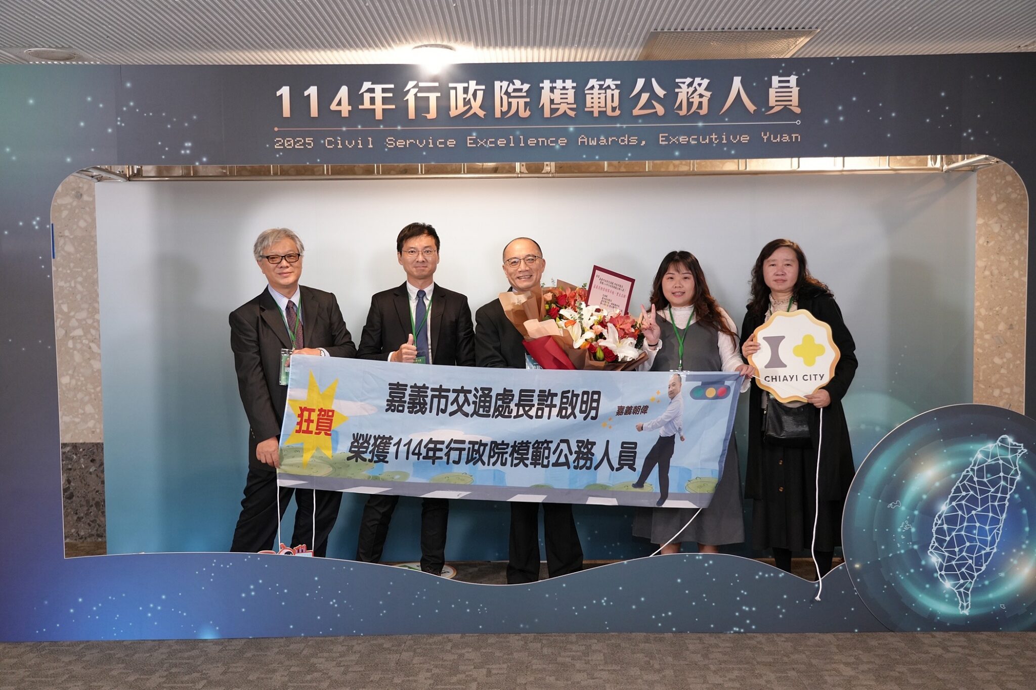 114年行政院模範公務人員名單日前出爐,中央與地方合計有36人獲選。嘉義市政府交通處長許啟明於任內積極推動高鐵聯外嘉義輕軌建設、推動三橫三縱三環新路網規劃、興建5處立體停車場及改善交通規劃解決長年交通瓶頸,獲選為行政院模範公務人員。昨(3)日由行政院院長卓榮泰親自頒獎,表揚各獲獎公務人員之貢獻與付出。