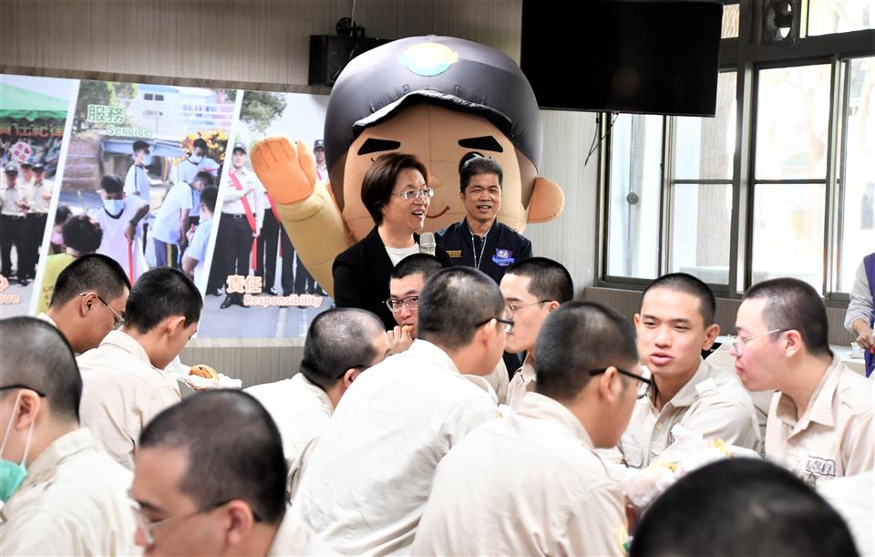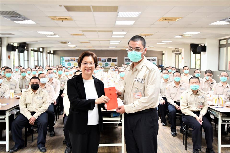 彰化縣長王惠美關心彰化子弟兵,今(5)日上午由縣府民政處副處長陳俊南和彰化軍人服務站長魏治民等人陪同,前往成功嶺替代役訓練中心探視第270梯次一般替代役及132梯次研發替代役的縣籍子弟兵,受到營區長官及受訓役男熱烈歡迎。王縣長現場致贈加菜金及每人一份速食餐點,並以縣長媽媽的口吻叮囑役男把握服役期間鍛鍊身心、立定志向,同時保重身體。期許快樂當兵,平安退伍。