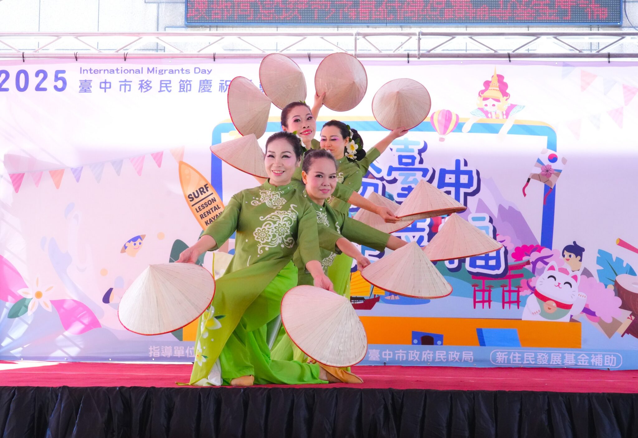 移民節前夕,台中市政府今(6)日在新住民藝文中心前廣場舉辦「繽紛台中、移定幸福」移民節慶祝活動,邀請多國新住民團體帶來精彩舞蹈,並規劃多元文化市集、新住民小學堂闖關、越南斗笠彩繪等體驗活動,吸引大批民眾到場感受多元文化魅力。民政局長吳世瑋代表市長盧秀燕出席活動表示,市府每年舉辦移民節活動,期盼打造多元文化與族群交流的友善平台,展現新住民的活力與創意,並預祝新住民朋友移民節快樂。