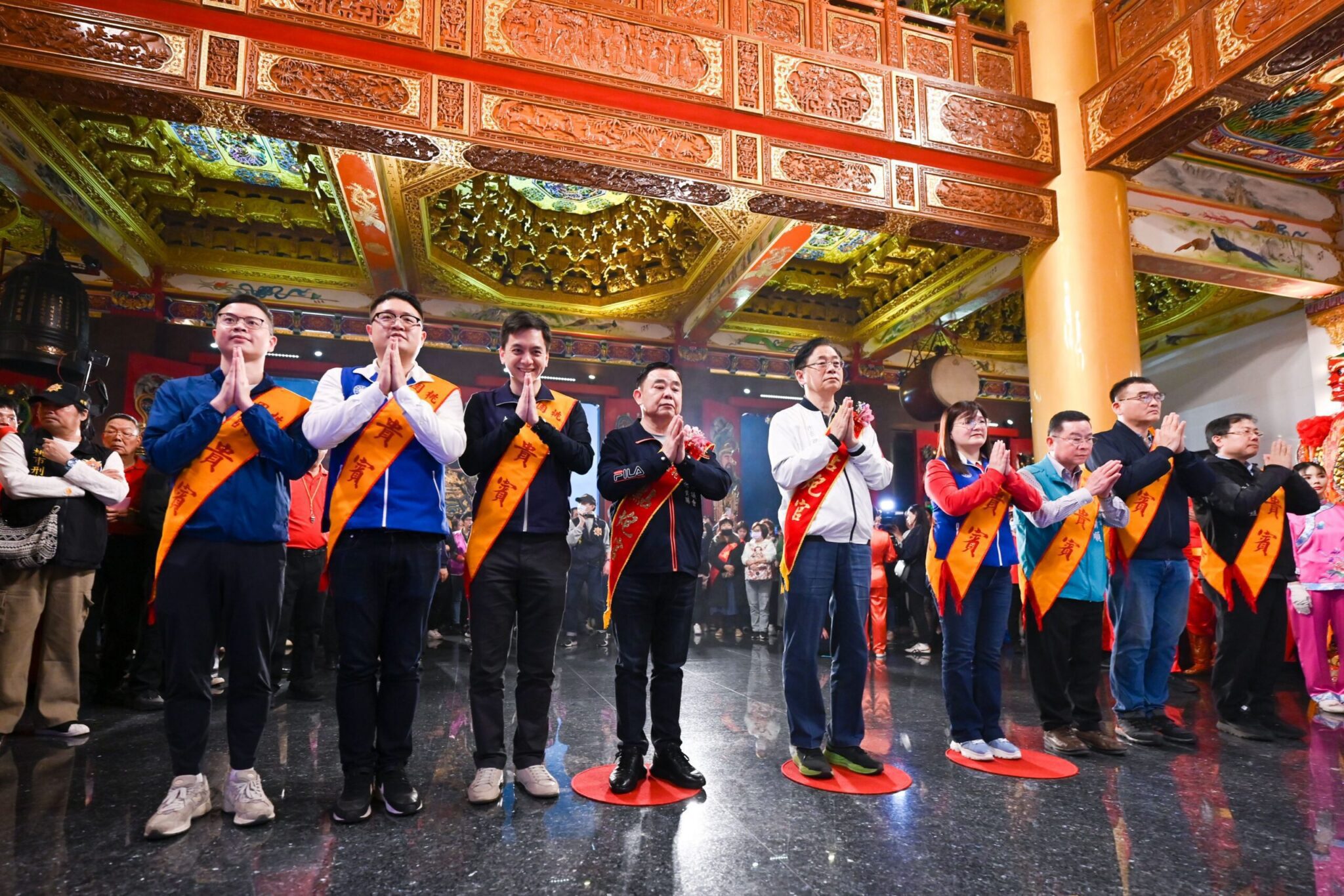 包括立法委員牛煦庭、萬美玲、桃園市議會議長邱奕勝、市議員林政賢、陳美梅、張桂綿、凌濤、張碩芳、錢龍、許清順、總統府副秘書長何志偉、市府警察局長吳坤旭、民政局主秘蔡世志、蘆竹區長李岳壇、桃園龍德宮宮主丁素珠、主委林錦輝、前桃園縣長吳志揚等均一同出席。(照片/桃園市政府提供)