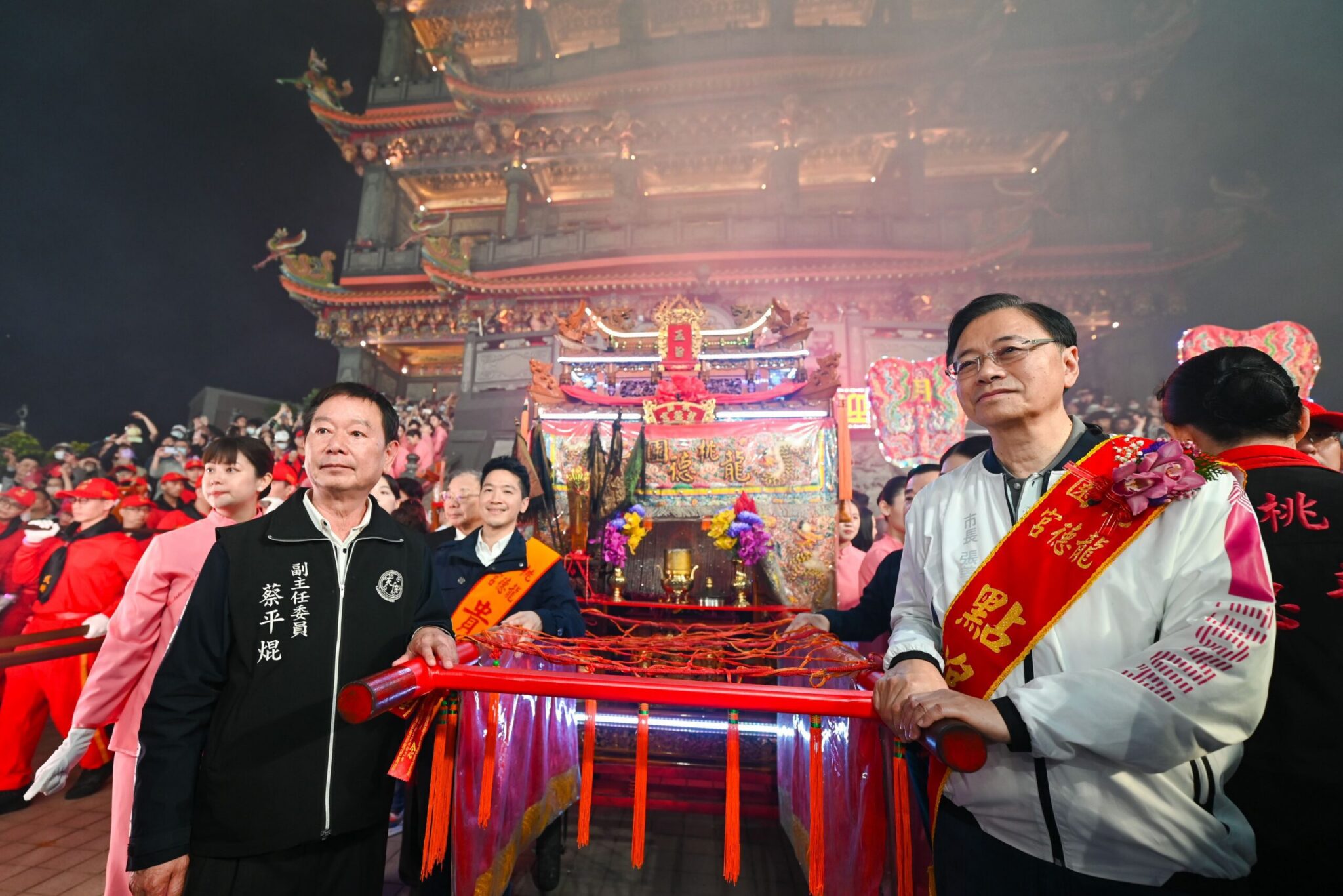 桃園市長張善政1日晚間前往蘆竹區,出席「桃園龍德宮9天8暝徒步遶境」。張善政表示,龍德宮四媽祖9天8夜南巡祈安遶境,除了考驗鄉親朋友的體力、毅力及耐力,也展現出信眾對四媽祖的虔誠之心,桃園龍德宮四媽祖遶境活動已成為臺灣極具代表性的宗教活動之一。