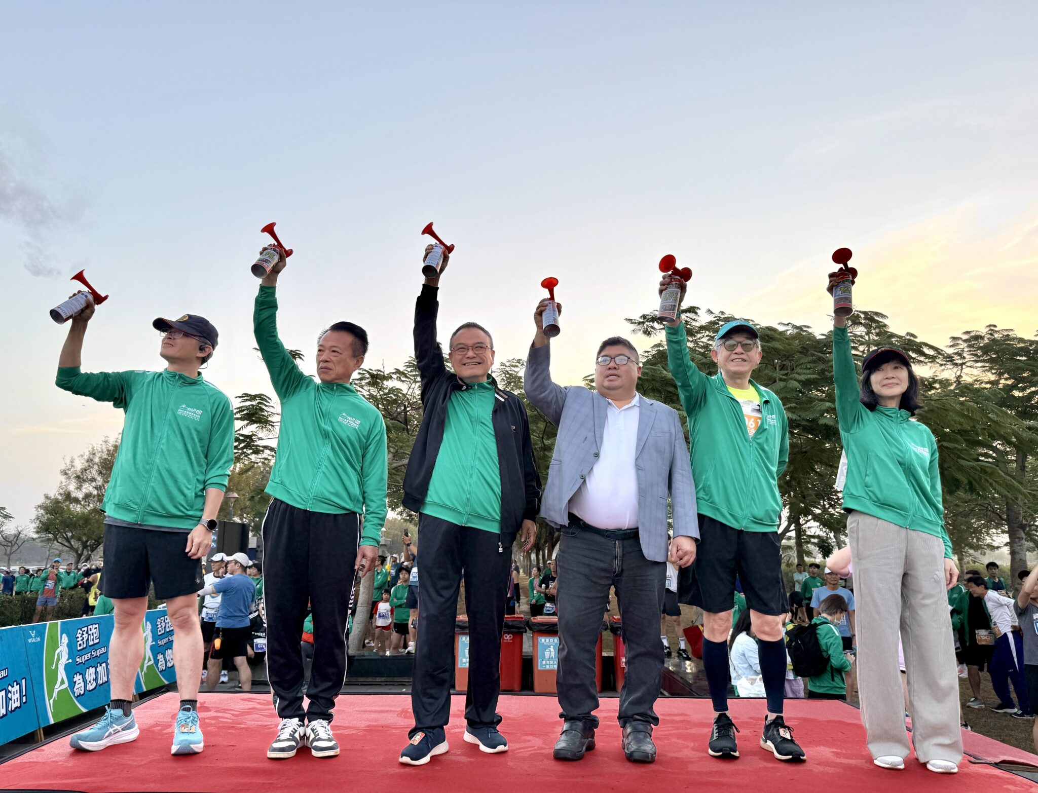 「2025故宮南院馬拉松」由故宮院長蕭宗煌(左3)、副院長黃永泰(右2)、副院長余佩瑾(右1)、處長彭子程(左1)、嘉義縣長翁章梁(左2)、立法委員蔡易餘(右3)等共同鳴槍起跑。