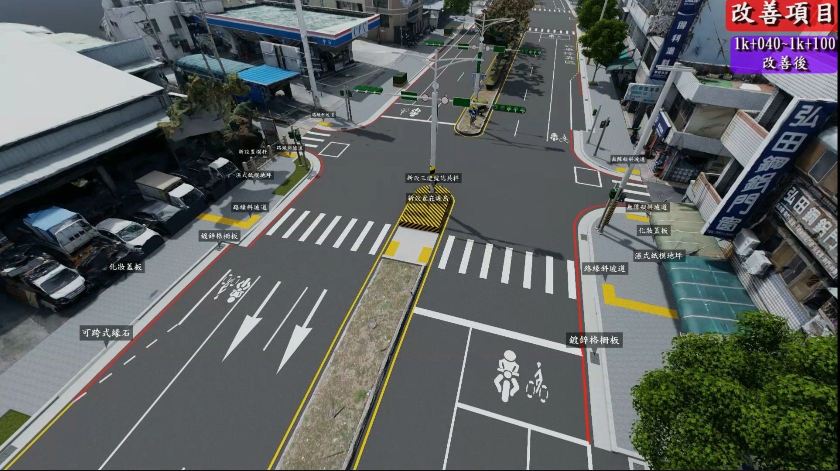 建設局表示,此次施工延續雅潭路二至四段(昌平路四段至中清路三段)的改善成果,進一步拓寬人行道至3米,優化路口行穿線退縮並加大停等區面積,增設庇護島,同時考量車行順暢,增設偏心左轉車道並改善路面。此工程不僅提升鄰近學區及人口密集區的人行環境安全,也具備強化學童安全、連結潭子與大雅發展、串聯地方重要節點的指標性意義。此外,為營造優質綠化景觀,將新增156株喬木,並適當換植現況不適合的樹種。未來完工後,將帶動周邊道路的改善需求,進一步落實盧市長「富市台中,行人安全」的城市願景。