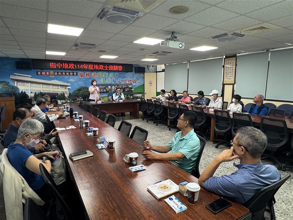 為強化與地政士之間的交流合作,提升服務品質,田中地政事務所於114年12月2日舉辦「地政士座談會」,邀請轄區內地政士共同出席,針對土地登記、地籍測量及地價等業務進行簡報,藉由雙向溝通,提供民眾更即時、便捷且正確的地政服務。