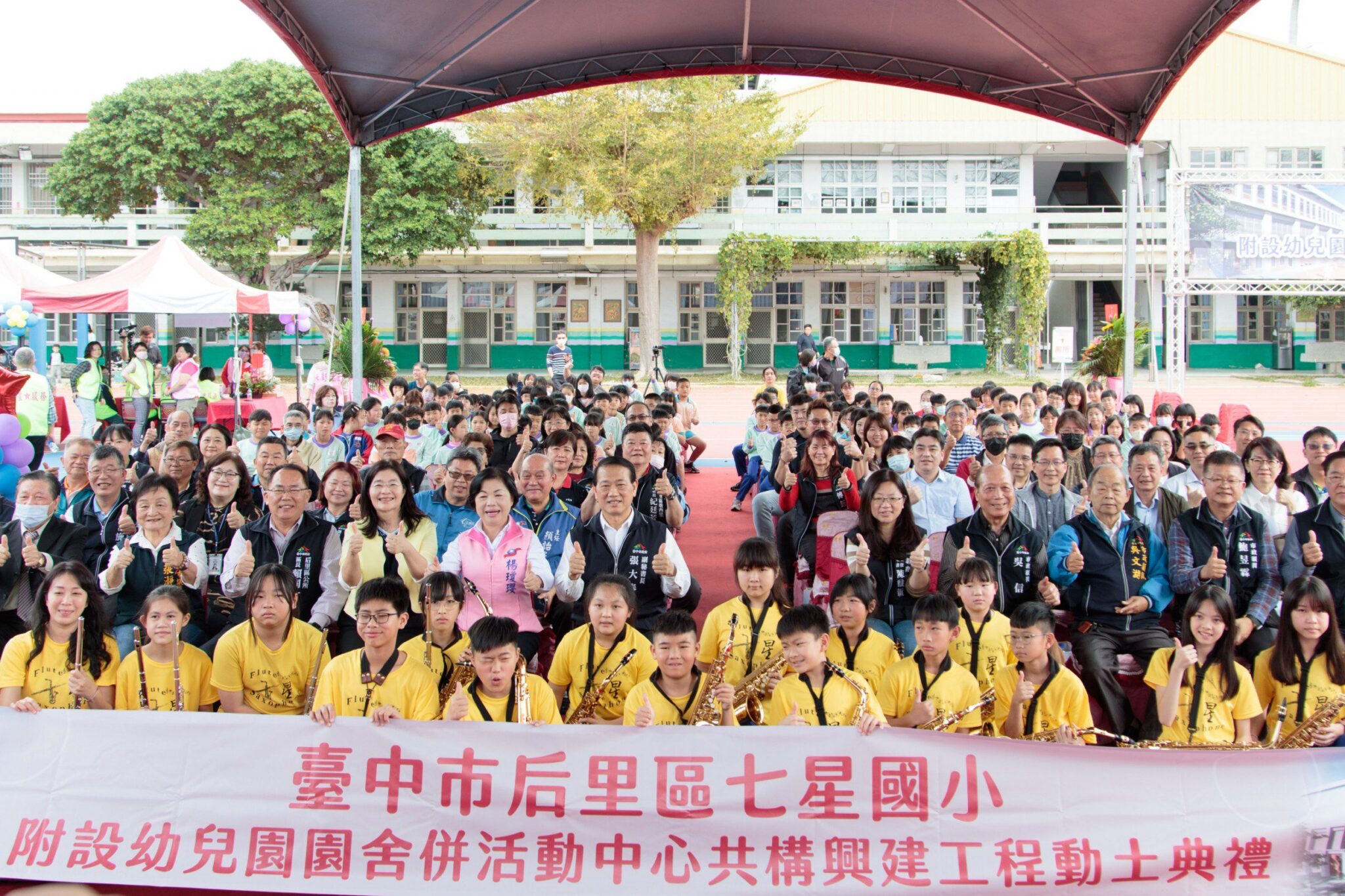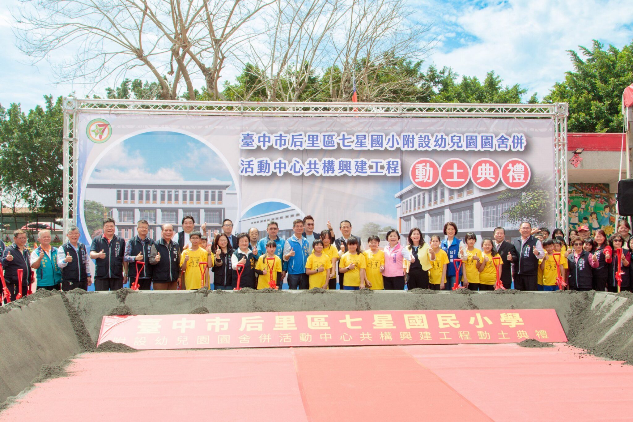 「投資教育,孩子才有好未來!」教育局長蔣偉民指出,台中市獲評比為全國最幸福城市,也是最關心下一代教育的城市,112年一次籌編24億元啟動「給孩子一個禮堂計畫」補助原縣區22校、市區3校興建活動中心,為孩子圓夢,其中大里區光正國中、大里國小、內新國小去年9月率先動土開工,去年底沙鹿區鹿峰國小及鹿陽國小活動中心也開工動土,接著今天后里區七星國小活動中心開工,後續還有北屯區、大雅區、太平區、大肚區、豐原區、東勢區、烏日區及南區學校共19座活動中心將接連動土開工,給孩子們一個全新又安全舒適的學習環境。