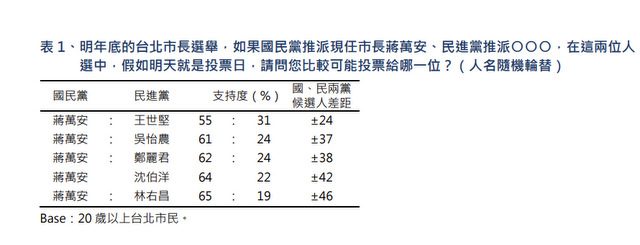 綜合報導/《TVBS》民調中心8日公布最新2026台北市長民調顯示,現任中國國民黨籍台北市長蔣萬安在所有對比組合中均大幅領先民進黨潛在人選,包括立委王世堅、沈伯洋、壯闊台灣聯盟發起人吳怡農、行政院副院長鄭麗君與民進黨前秘書長林右昌。 其中,以王世堅落後幅度最小(55%比31%),但仍相距24個百分點;若蔣萬安對決林右昌,差距更拉大至46個百分點,是所有組合中最大差距。值得注意的是,在20至29歲民眾中,王世堅支持度超越蔣萬安。 根據《TVBS》民調顯示,不論民進黨最終選擇何人出征,藍綠差距始終顯著,顯示蔣萬安在台北之爭中佔有強勢地位。 民調表示,在蔣萬安與王世堅的對比中,蔣獲得55%支持、王為31%,未決定者占14%。與去年12月調查相比,蔣萬安微減1個百分點、王世堅增加4個百分點,差距縮至24%。 值得注意的是,20至29歲民眾中,王世堅支持度上升至48%,首次超越蔣萬安的31%;不過30歲以上年齡層,蔣萬安仍全面領先,支持度皆突破五成。 40至49歲、60歲以上民眾對蔣的支持甚至超過六成,遠勝王的兩至三成;50至59歲族群中,蔣萬安下降至56%,王世堅則上升至34%,差距略縮。30至39歲民眾也呈現趨勢收斂,蔣下降至51%,王上升至40%。 政黨傾向部分,民進黨支持者有69%挺王世堅,僅16%支持蔣萬安;國民黨認同者則呈現高度集中,有94%支持蔣。在民眾黨支持者中,“小草”有67%傾向蔣萬安,支持王世堅的比例上升至29%,較過去調查增加將近一成。至於中立選民,雖然蔣萬安支持度減少8%、王世堅增加15%,但蔣仍以44%比28%保持領先,另有28%尚未表態。 ![]() 民調同時公布其他四組藍綠對決結果,蔣萬安均保持明顯優勢: 吳怡農vs蔣萬安:61%比24%,差距37% 鄭麗君vs蔣萬安:62%比24%,差距38% 沈伯洋vs蔣萬安:64%比22%,差距42% 林右昌vs蔣萬安:65%比19%,差距46% 民調整體顯示,即便綠營尚未定於一尊,所有潛在參選人目前都難撼動蔣萬安的連任優勢。民進黨最終徵召誰出馬,恐將成為左右綠營能否“縮小差距”的關鍵。 本次調查是《TVBS》民意調查中心於11月27日至12月4日18:30至22:00進行的調查,共接觸1256位20歲以上台北市民,其中拒訪為250位,拒訪率為19.9%,最後成功訪問有效樣本1,006位,在95%的信心水準下,抽樣誤差為±3.1個百分點以內。抽樣方法採用電話號碼後四碼隨機抽樣,人員電話訪問,所有資料並依母體性別、年齡、地區、教育程度等項進行統計加權處理。調查經費來源為《TVBS》。原始問卷及詳細交叉表請上網:www.tvbs.com.tw/poll-center。 |